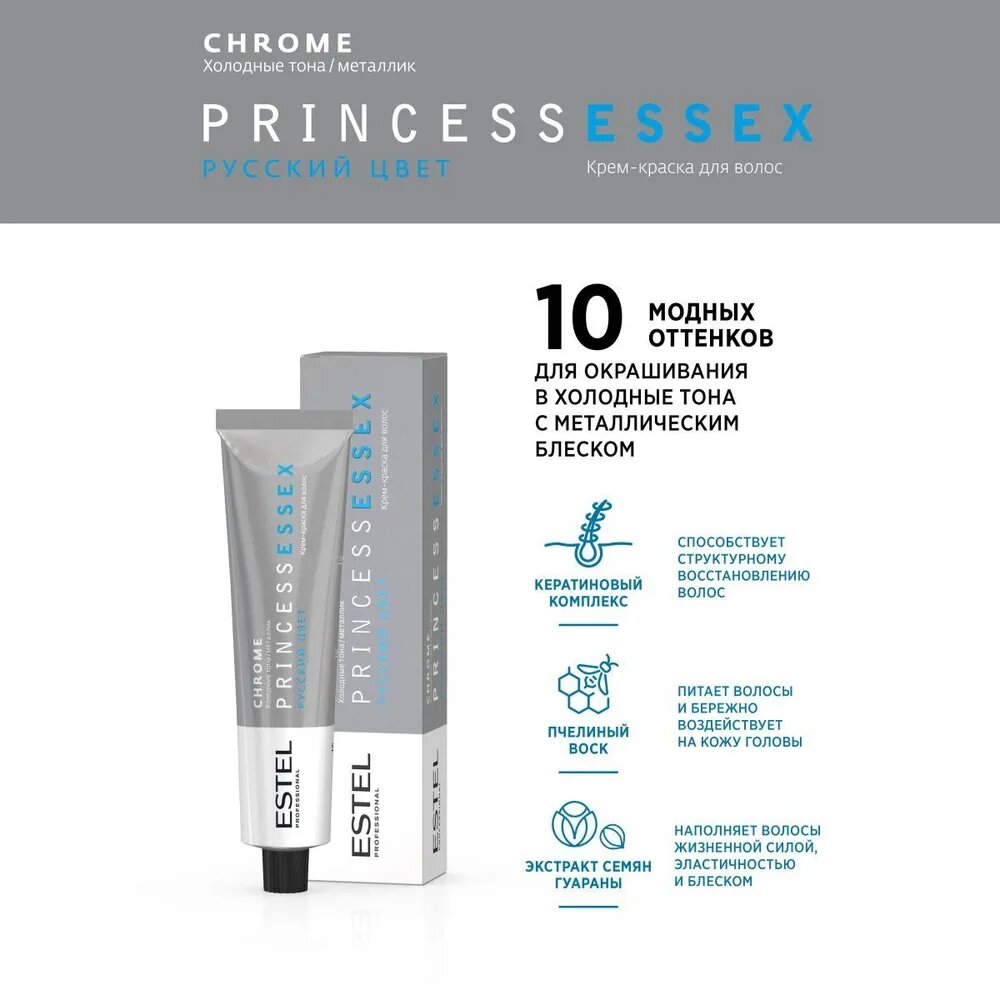 ESTEL PROFESSIONAL Крем-краска PRINCESS ESSEX для окрашивания волос, CHROME, 7/16 Русый пепельно-фиолетовый, 60 мл