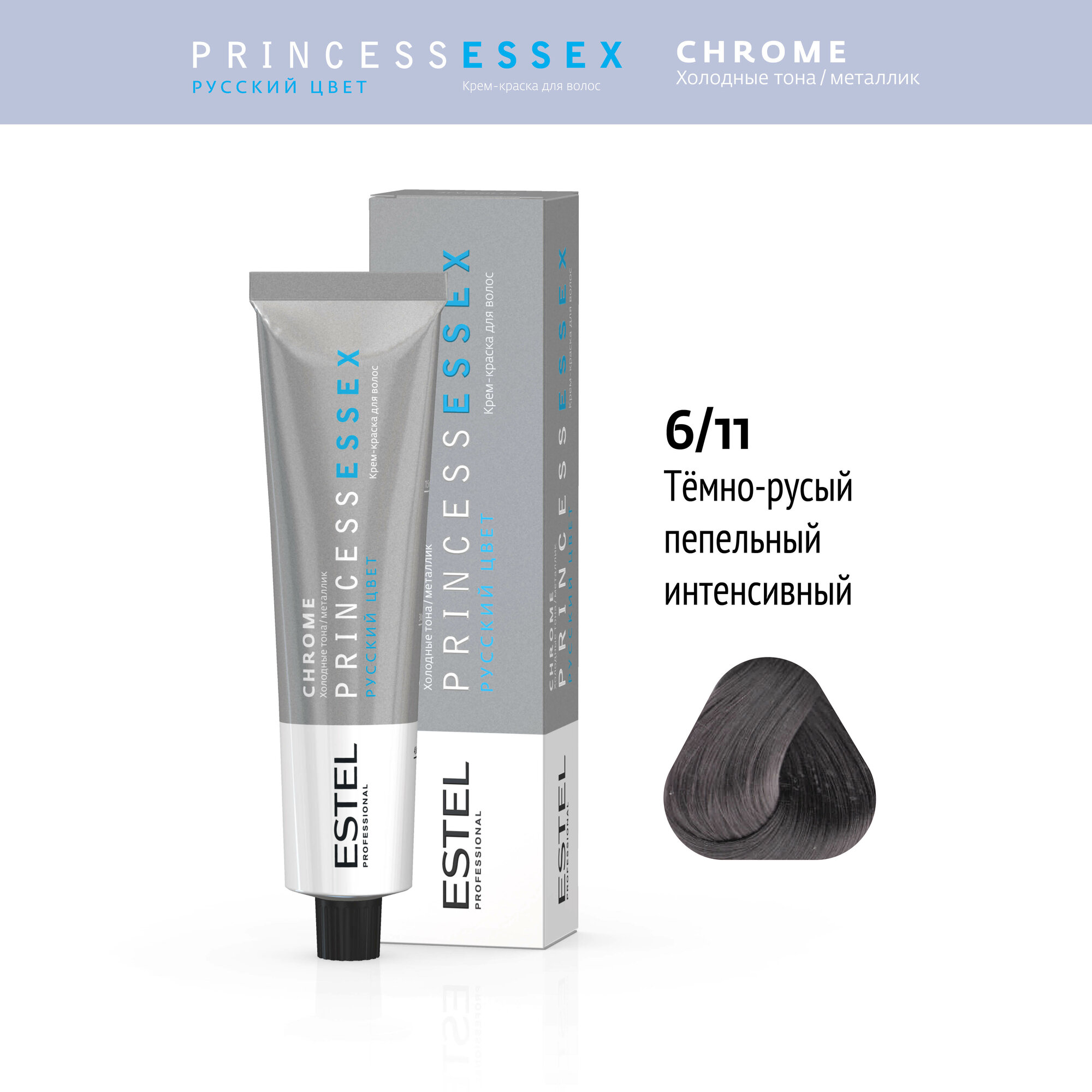 Купить ESTEL PROFESSIONAL Крем-краска PRINCESS ESSEX для окрашивания волос CHROME, 6/11 Темно-русый пепельный интенсивный