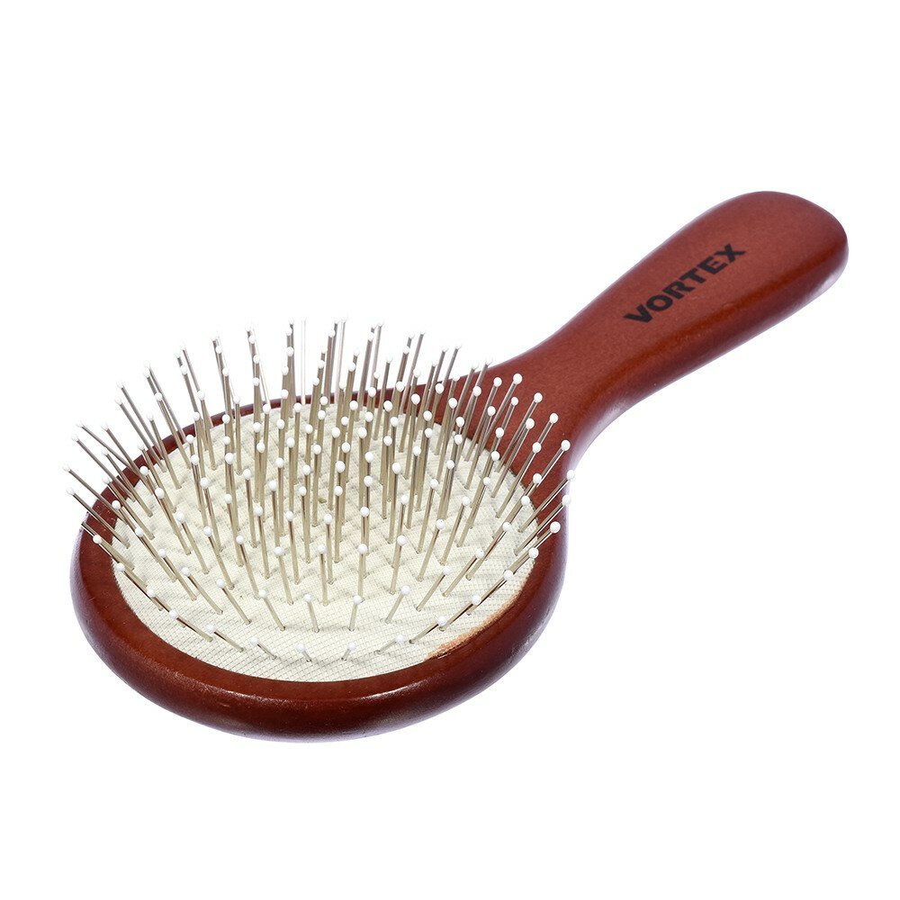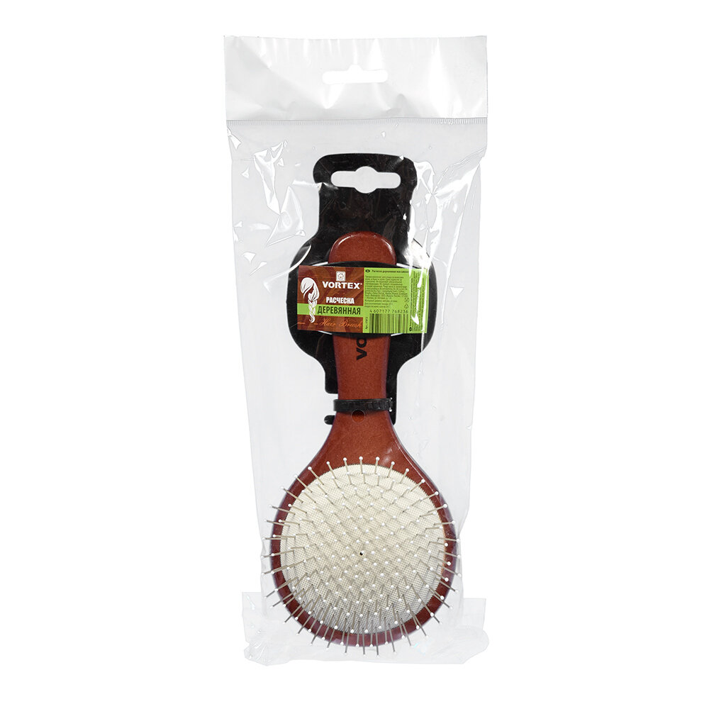 Расческа деревянная, массажная /для волос/с ручкой/для укладки 19,5х9,5х3,5 см, "круг", с металлическими зубчиками "VORTEX"