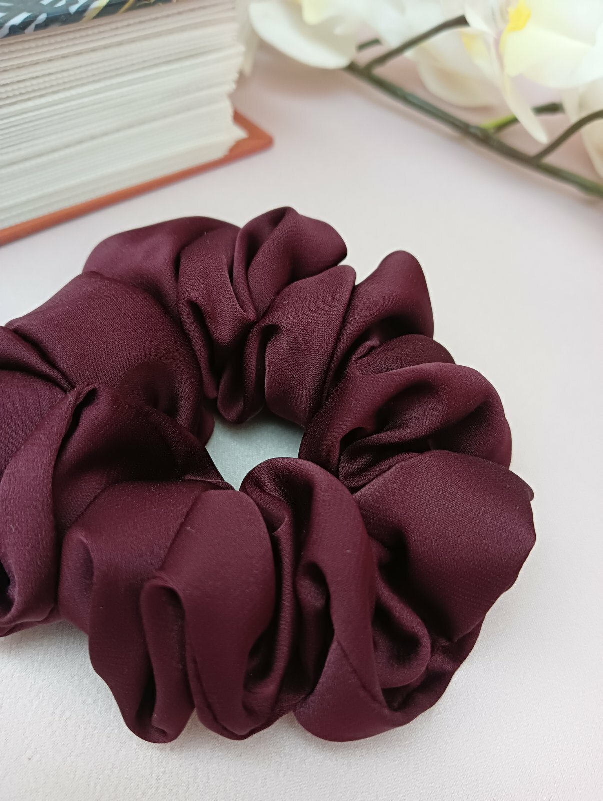 Резинка для волос из шелка Армани.Бардовый. средняя, высокой упругости.
