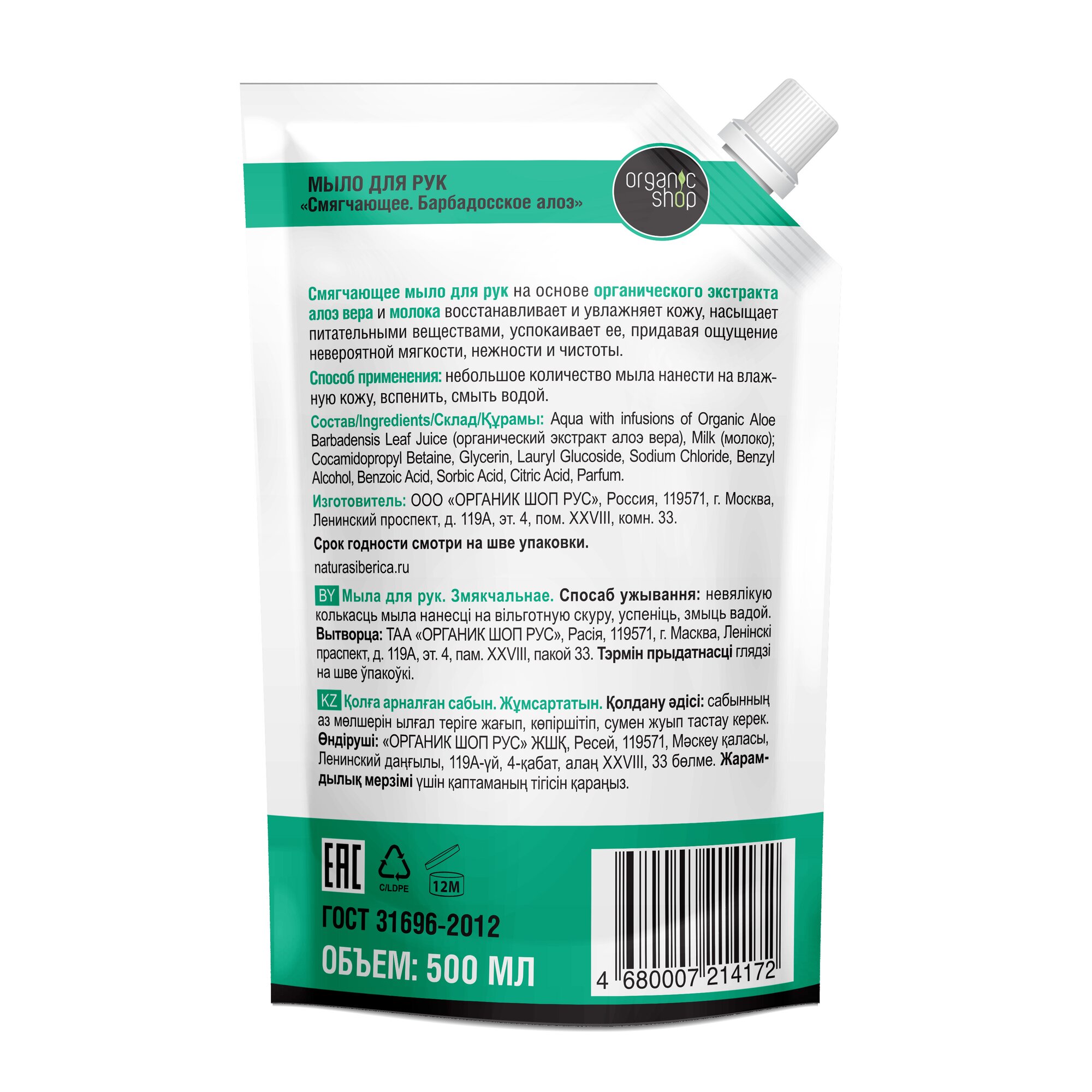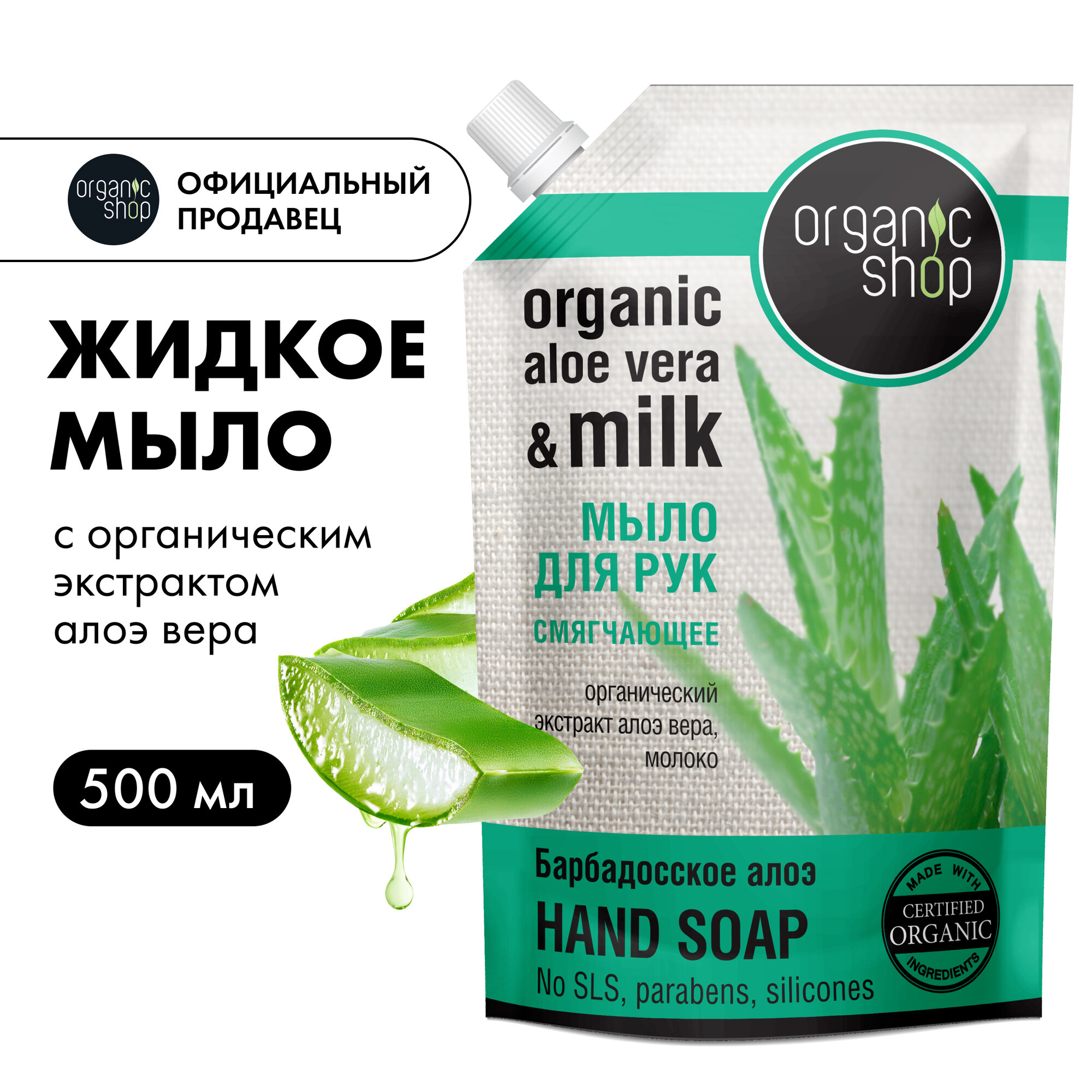 Купить Organic Shop Мыло жидкое Барбадосское Алоэ Дой-пак 500 мл