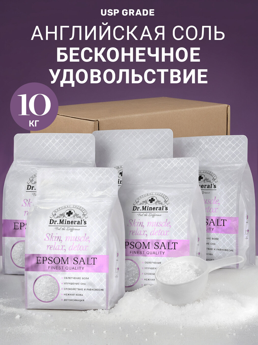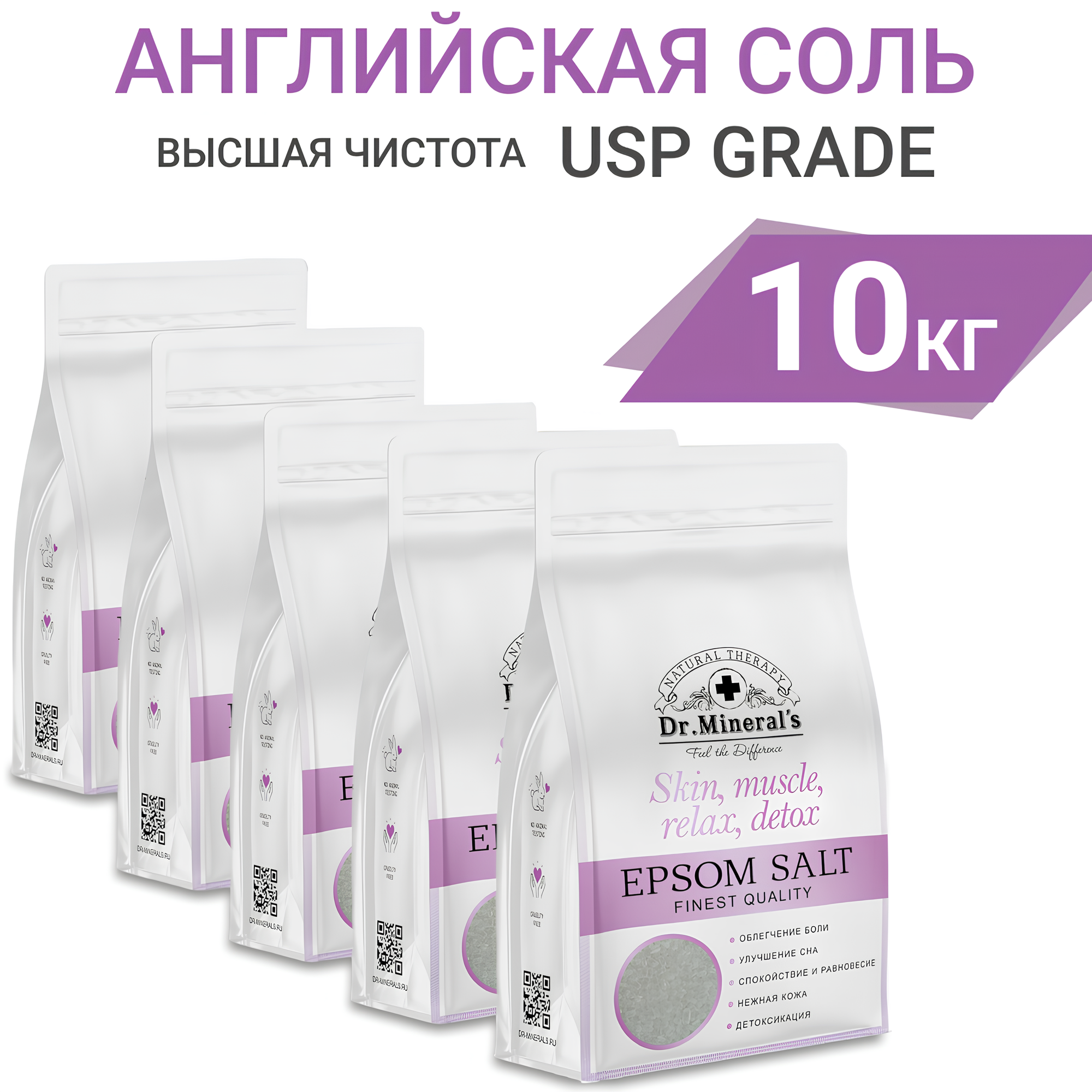 Dr.Mineral’s соль для ванн английская Epsom, косметологическая, 10 кг. (5 пакетов по 2 кг.)