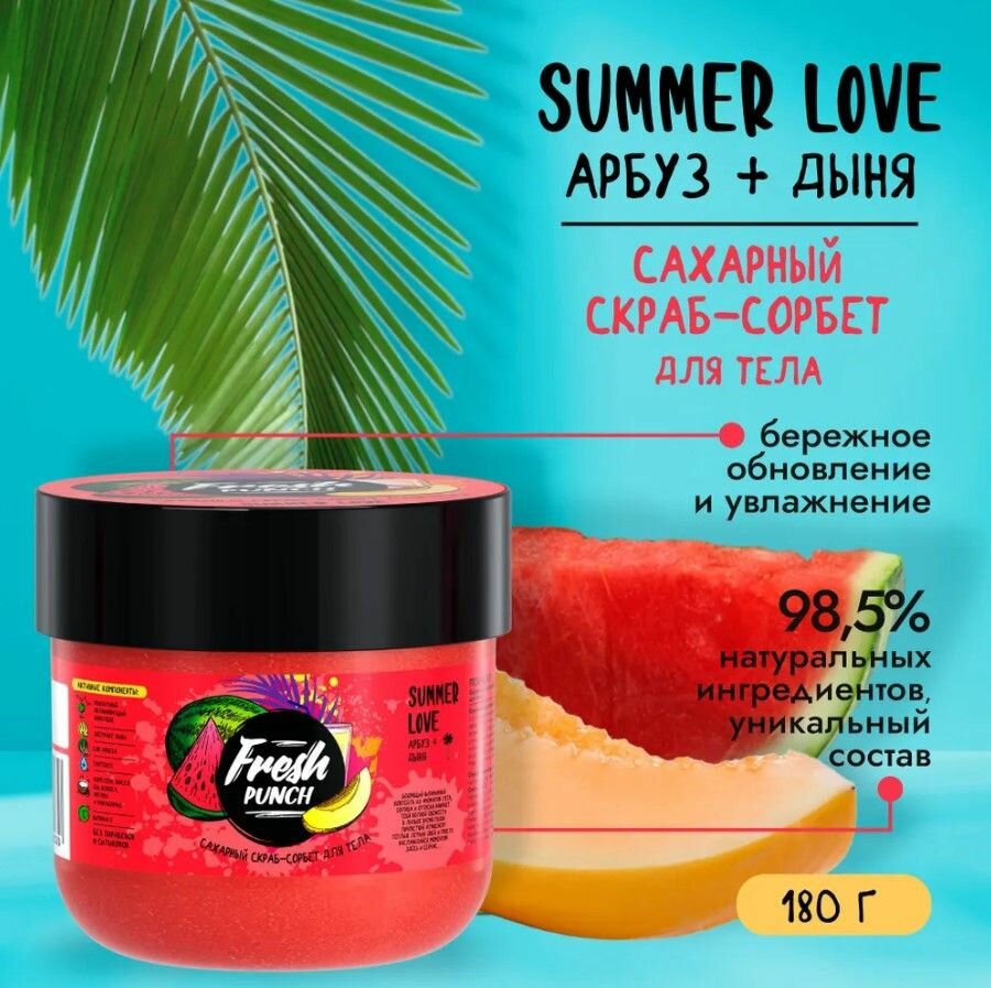Скраб для тела Fresh Punch "Summer Love", Арбуз-дыня, сахарный, 180 г интересное: