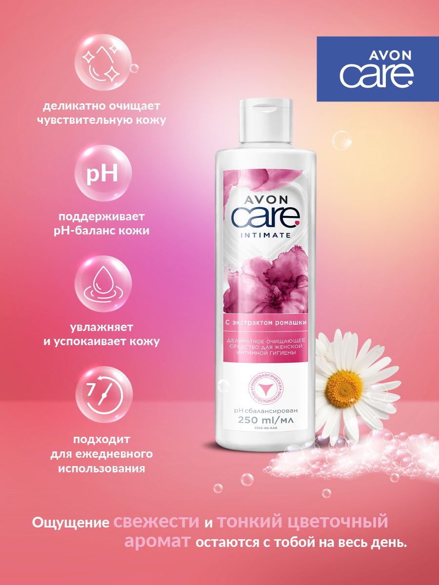 Купить AVON Деликатное очищающее средство. Гель для женской интимной гигиены с экстрактом ромашки, 250 мл