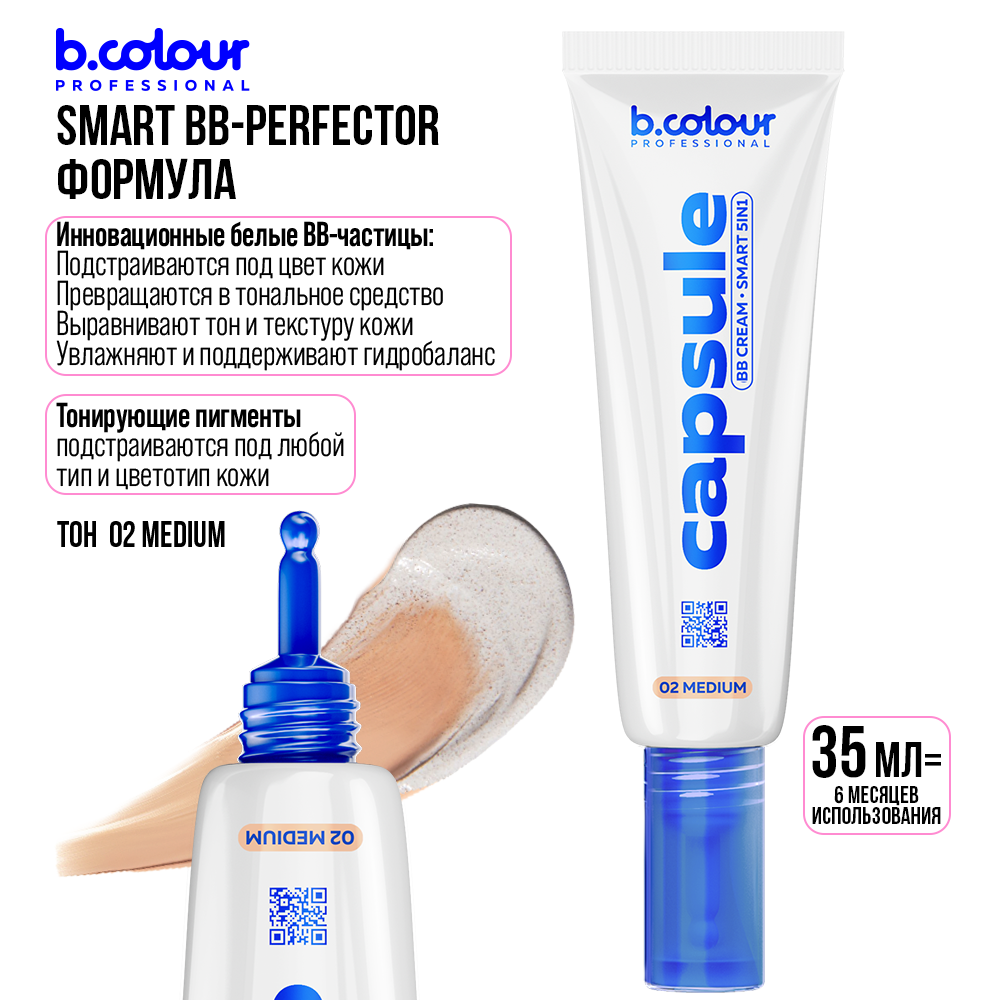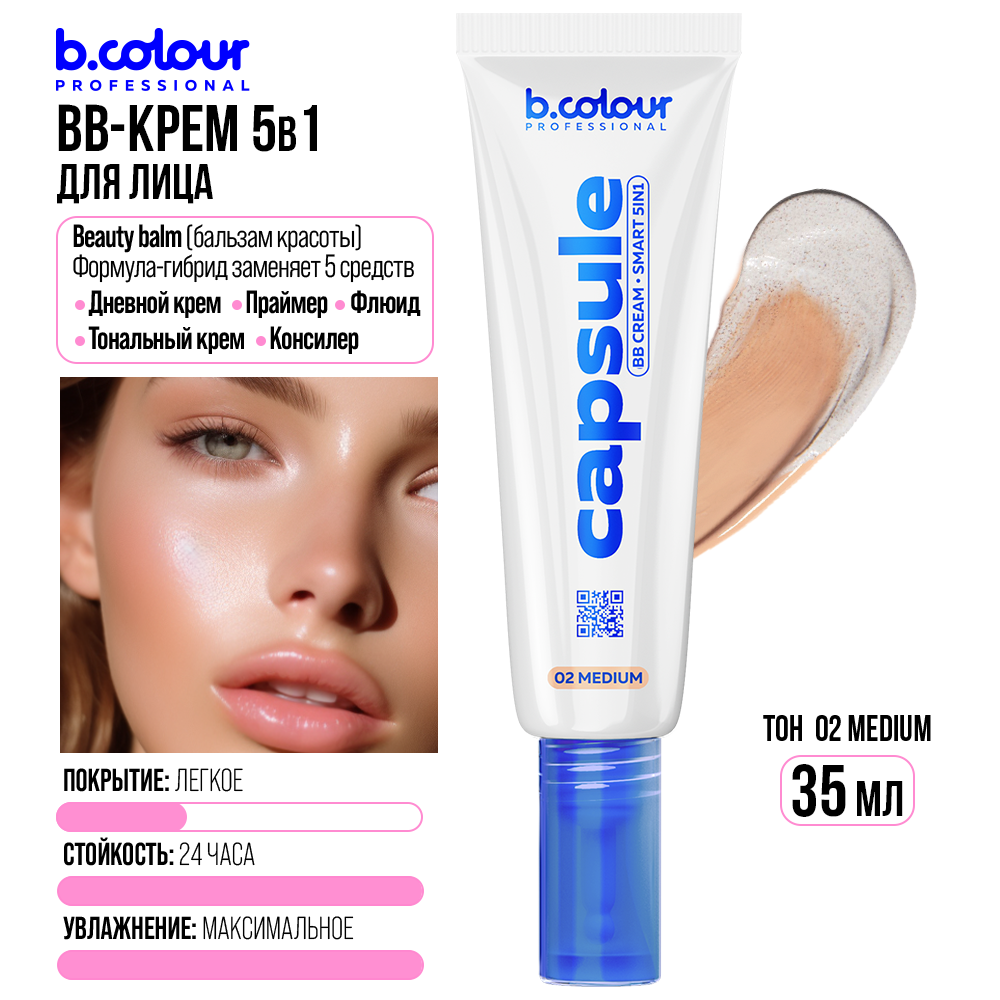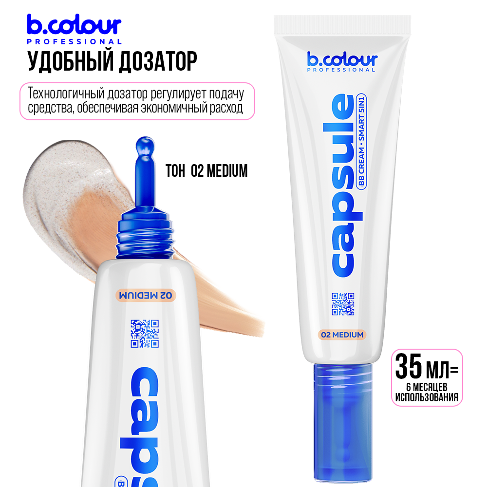 Купить B.COLOUR PROFESSIONAL BB крем для лица, тональный крем для лица увлажняющий, выравнивающий CAPSULE 02 MEDIUM