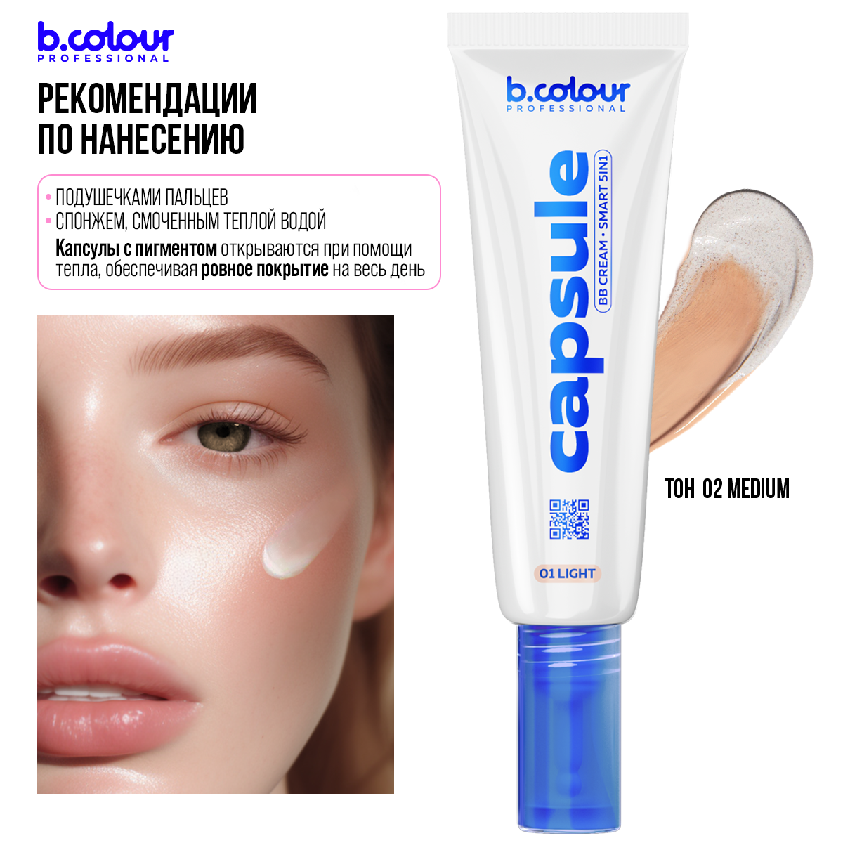 B.COLOUR PROFESSIONAL CC крем для лица, тональный крем увлажняющий, корректирующий CAPSULE 02 MEDIUM