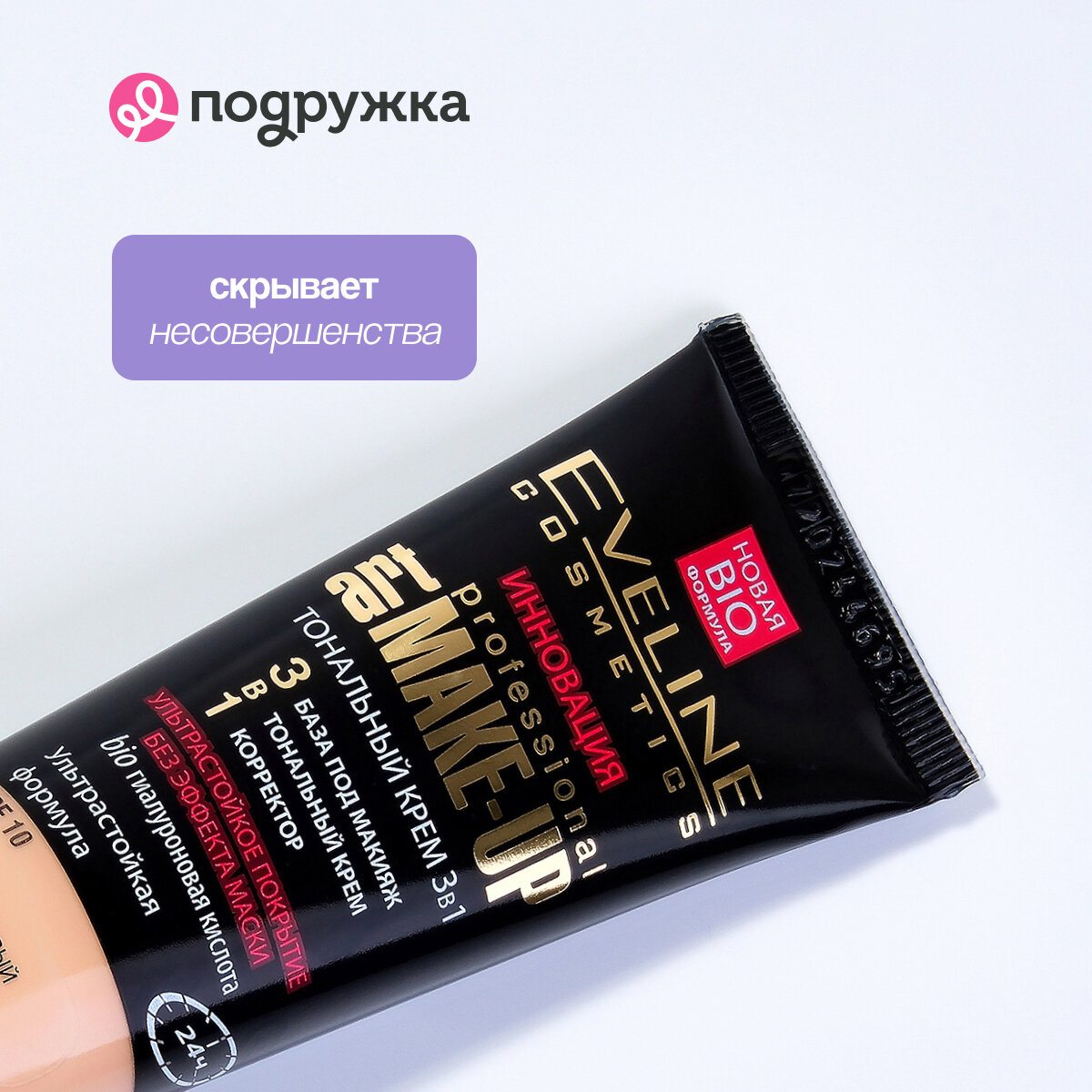 Тональный крем 3в1 EVELINE Art Professional Make Up 3в1, SPF 10 тон натуральный, 30 мл