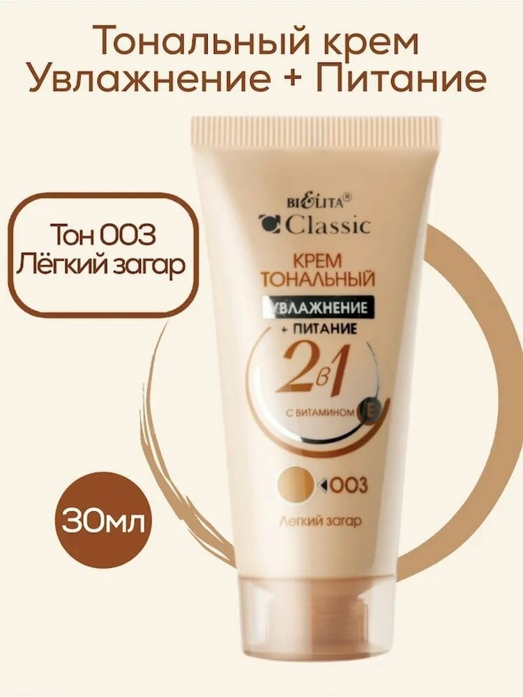 Bielita Тональный крем Classic Увлажнение + питание 2 в 1, 30 мл, оттенок: 003 легкий загар