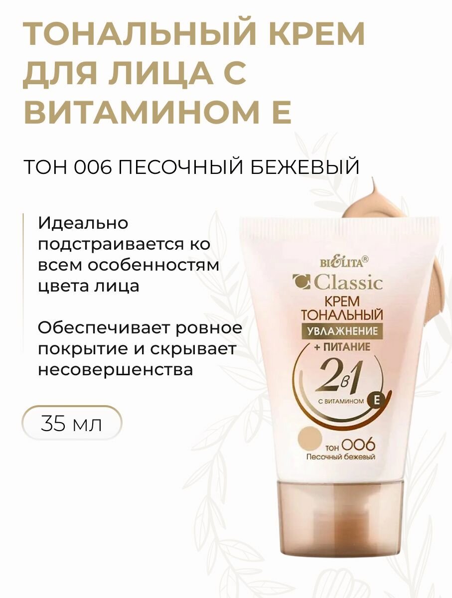 Белита Тональный крем для лица CLASSIC Увлажнение и Питание 2 в 1 тон 001 бежевый 30 мл