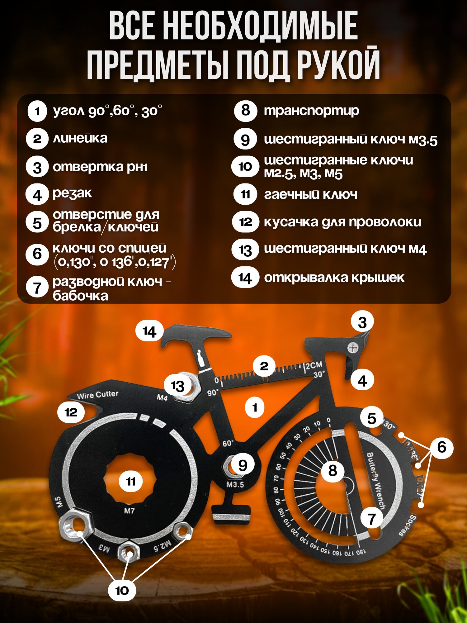 Мультитул брелок велосипед интересное: