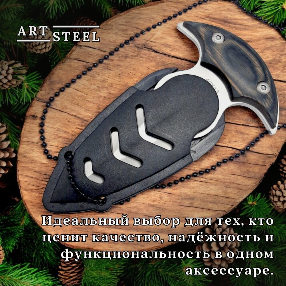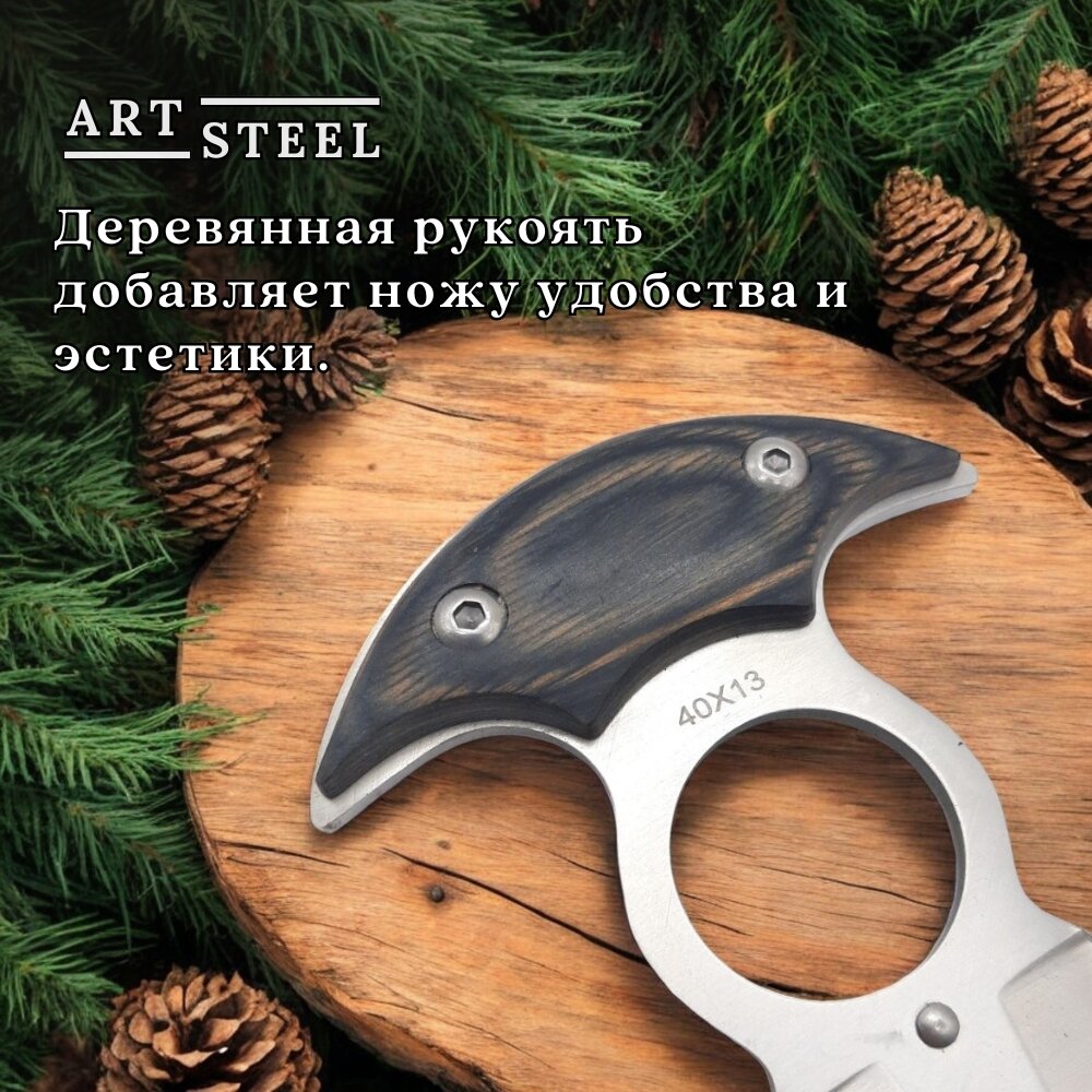 Нож Тычковый шейный нож Скат, ArtSteel, сталь 40Х13, рукоять дерево, серый интересное: