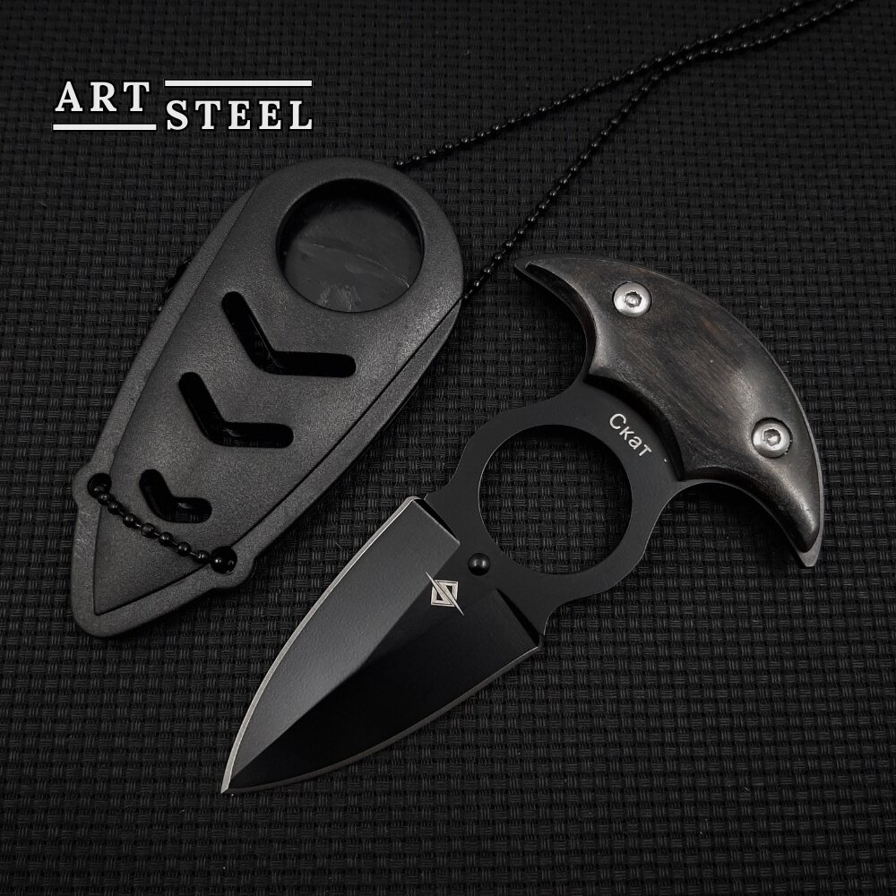 Нож Тычковый шейный нож Скат, ArtSteel, сталь 40Х13, рукоять дерево, серый