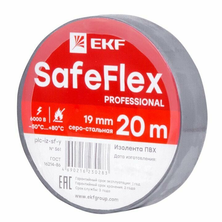 Изолента EKF SafeFlex PROxima ПВХ 19мм 20м серо-стальная plc-iz-sf-st (комплект 5шт.)