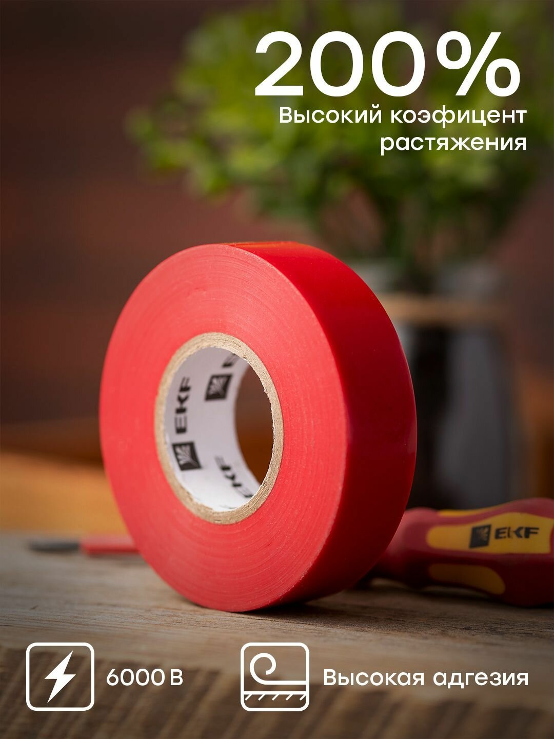 Изолента ПВХ EKF красная 19мм, 20м, серии SafeFlex 10 шт. plc-iz-sf-r