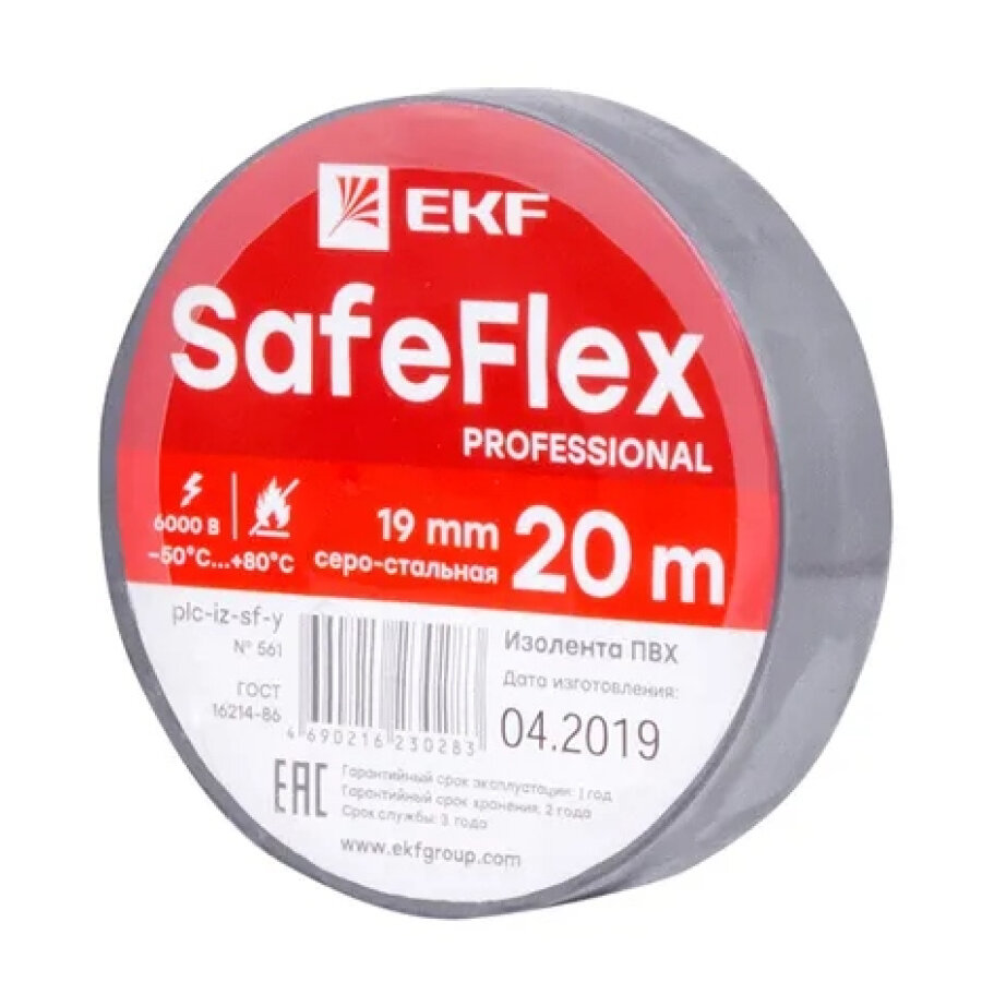 Купить Изолента EKF SafeFlex PROxima ПВХ 19мм 20м серо-стальная plc-iz-sf-st (комплект 5шт.)