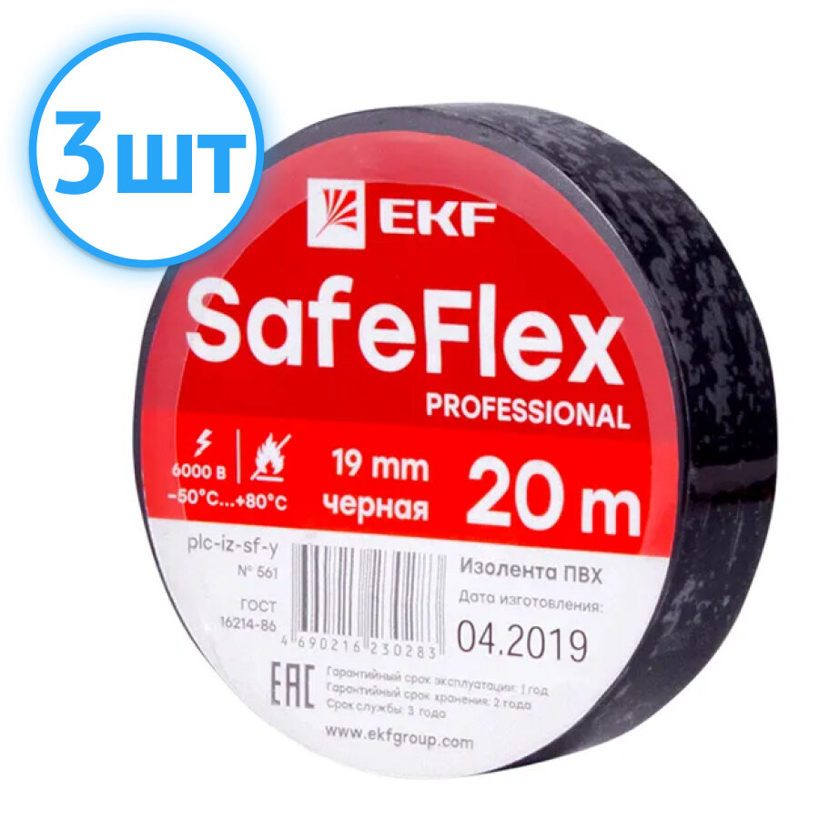 Купить Изолента EKF SafeFlex PROxima ПВХ 19мм 20м черный plc-iz-sf-b (комплект 3шт.)