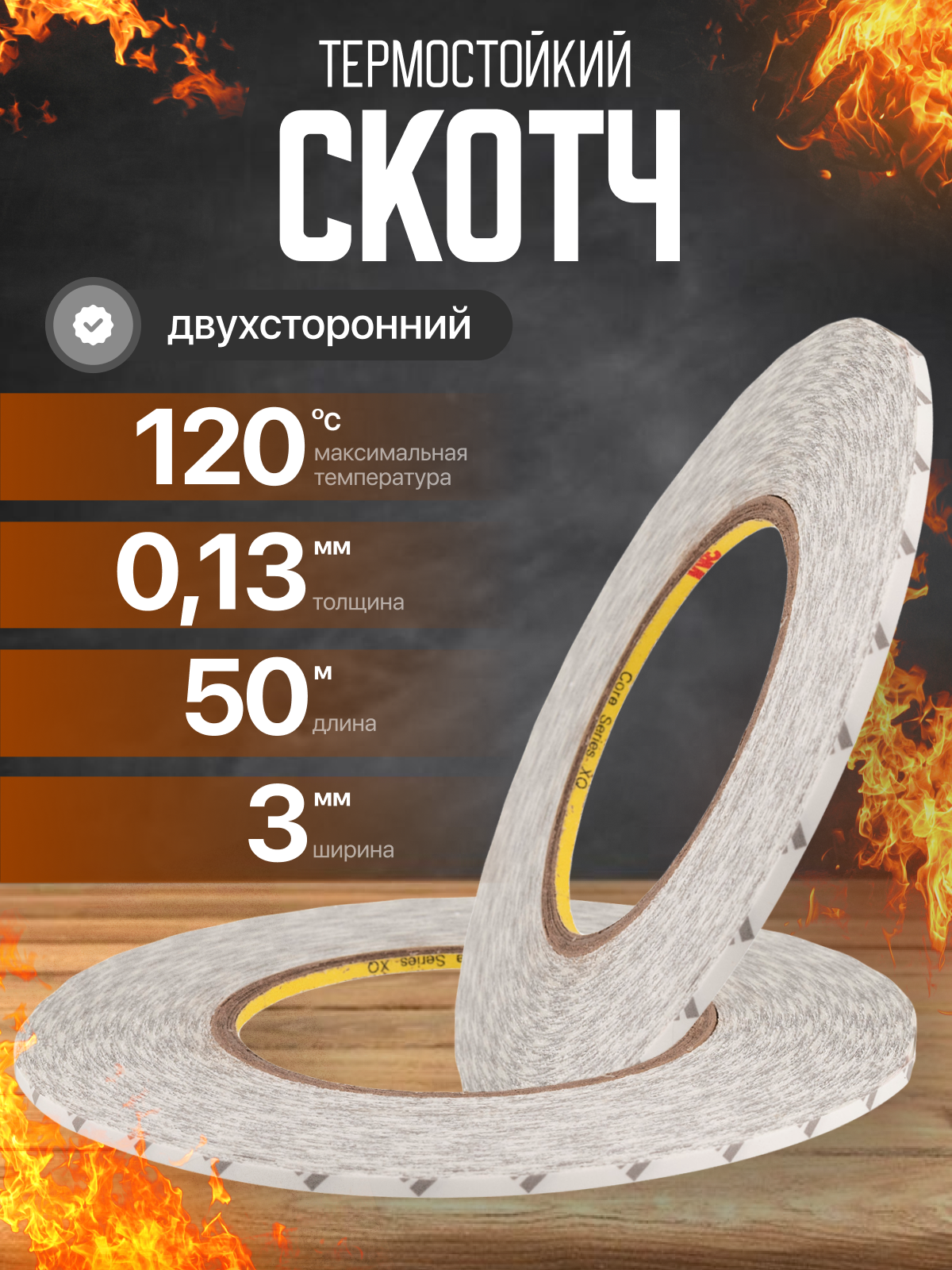 Купить Скотч двусторонний, термостойкий, высокой адгезии 3M9080 3mm 50m, для ремонта смартфонов и приклейки светодиодных лент