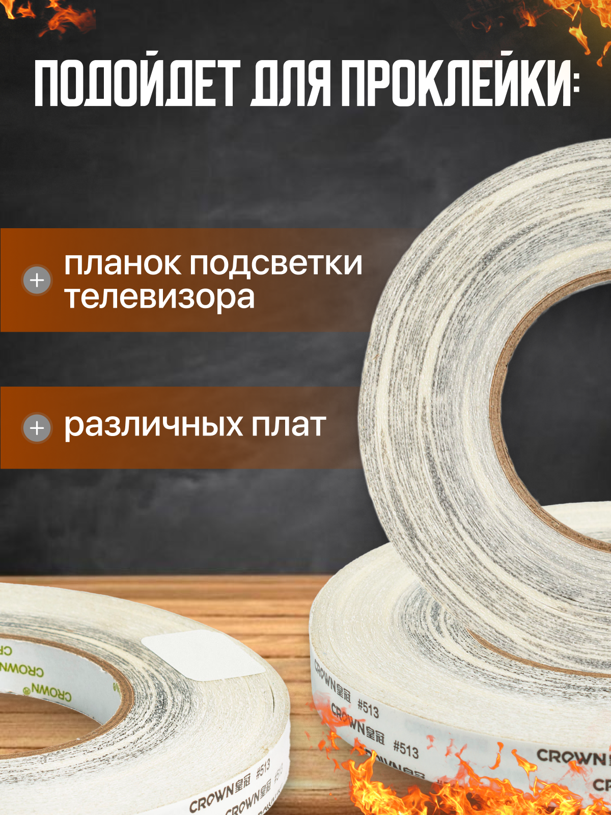 Купить Скотч для светодиодных планок телевизора, термостойкий, двухсторонний CROWN #513 (термоскотч, клейкая лента) 15мм 50м (Замена 3M 9080)
