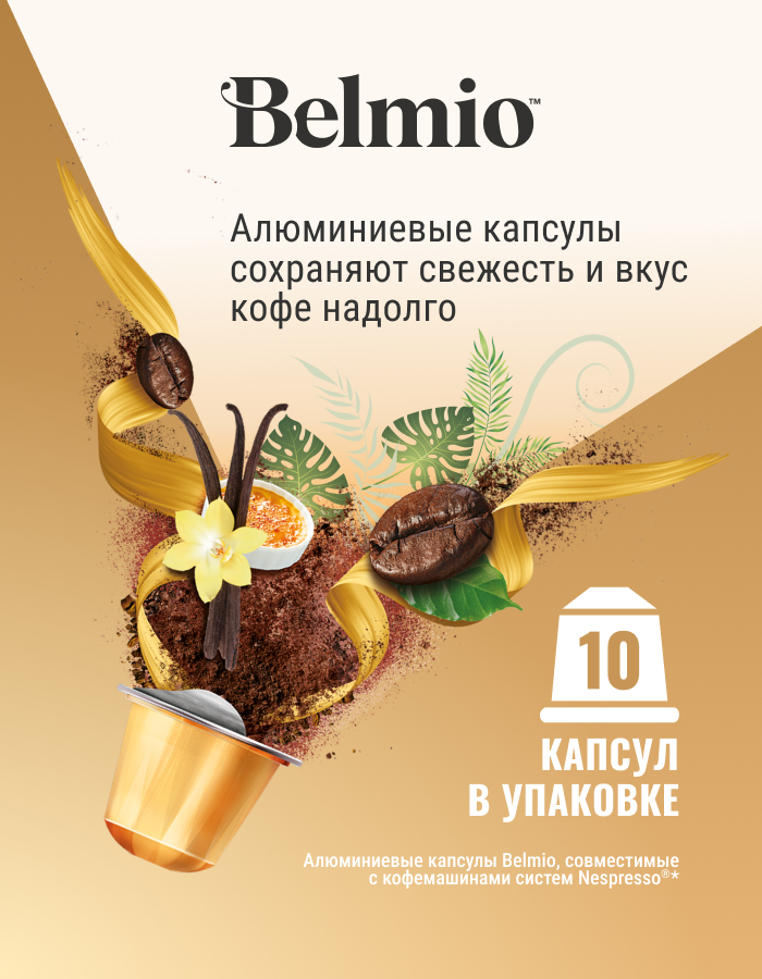 Кофе молотый Belmio в алюминиевых капсулах Madame Crème Brulée, для системы Nespresso (Неспрессо), 10 капсул