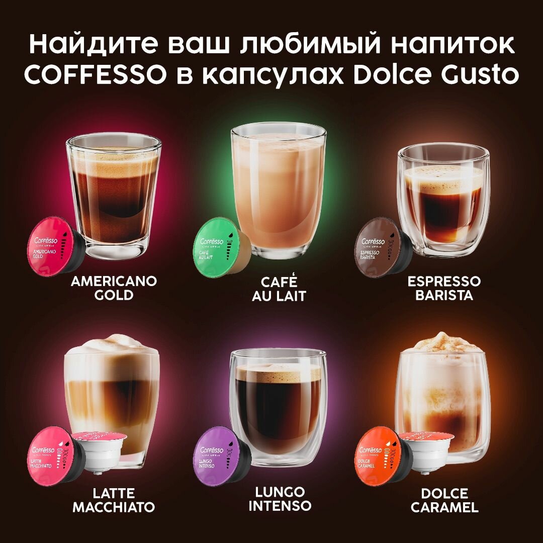 Кофе Coffesso Dolce Gusto (Americano, Espresso, Lungo) sto (Americano, Espresso, Lungo), ассорти набор, 3 уп х 16 капсул