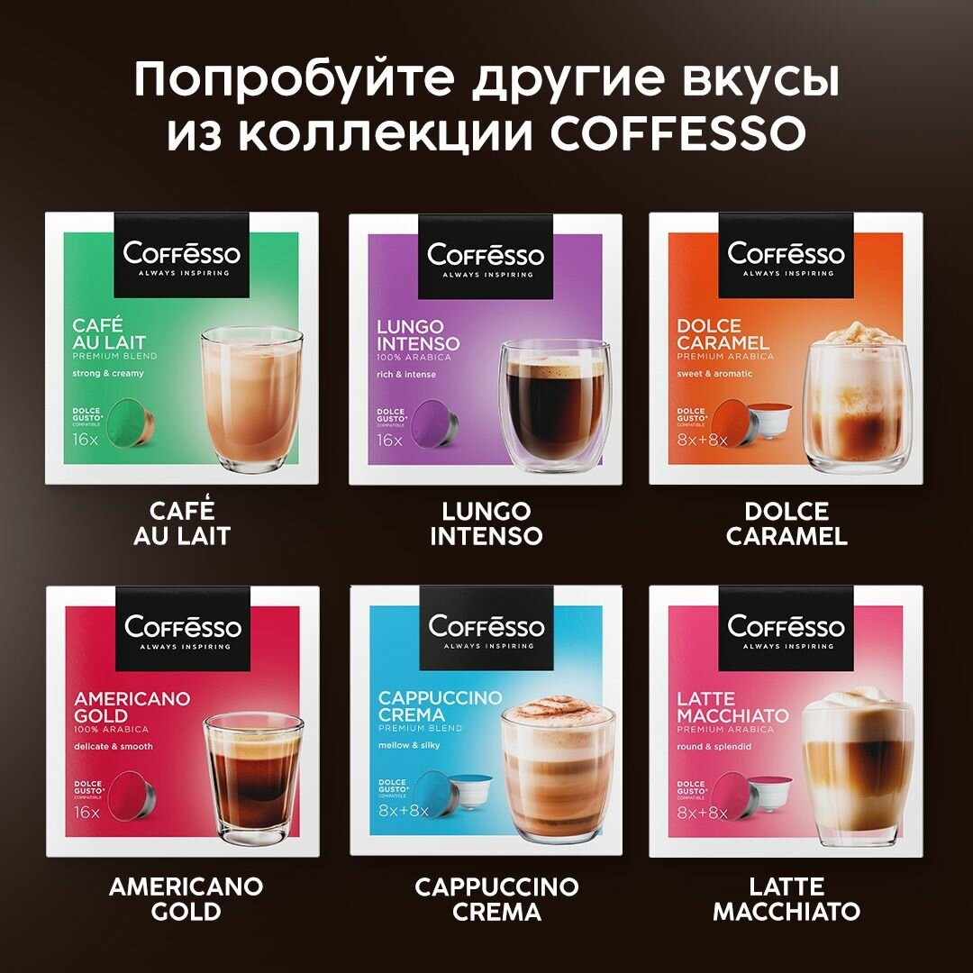 Кофе Coffesso Dolce Gusto (CAFE AU LAIT l, Caramel, Americano), ассорти набор, 3 уп х 16 капсул