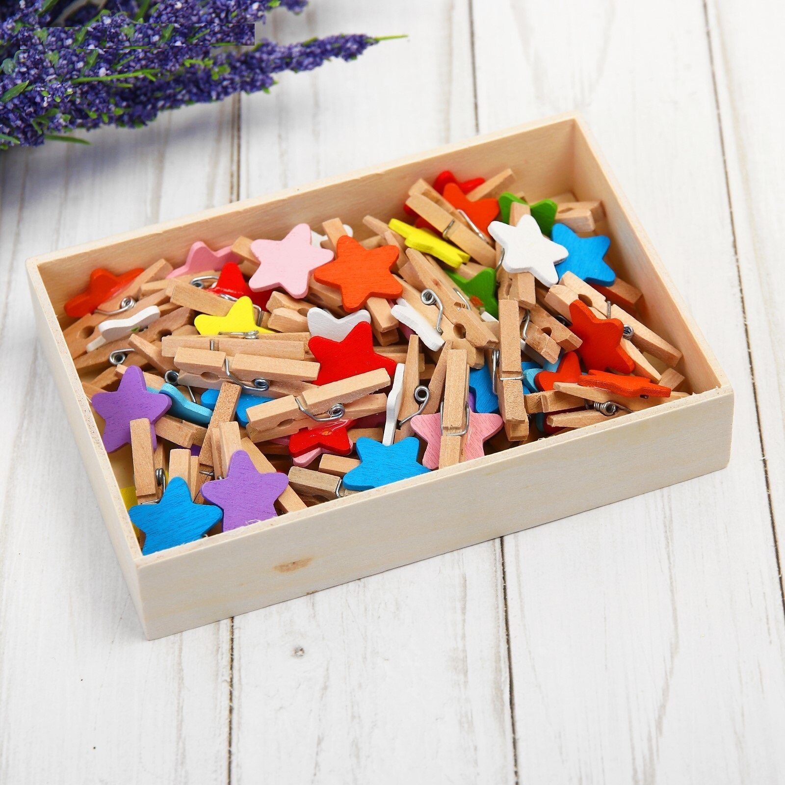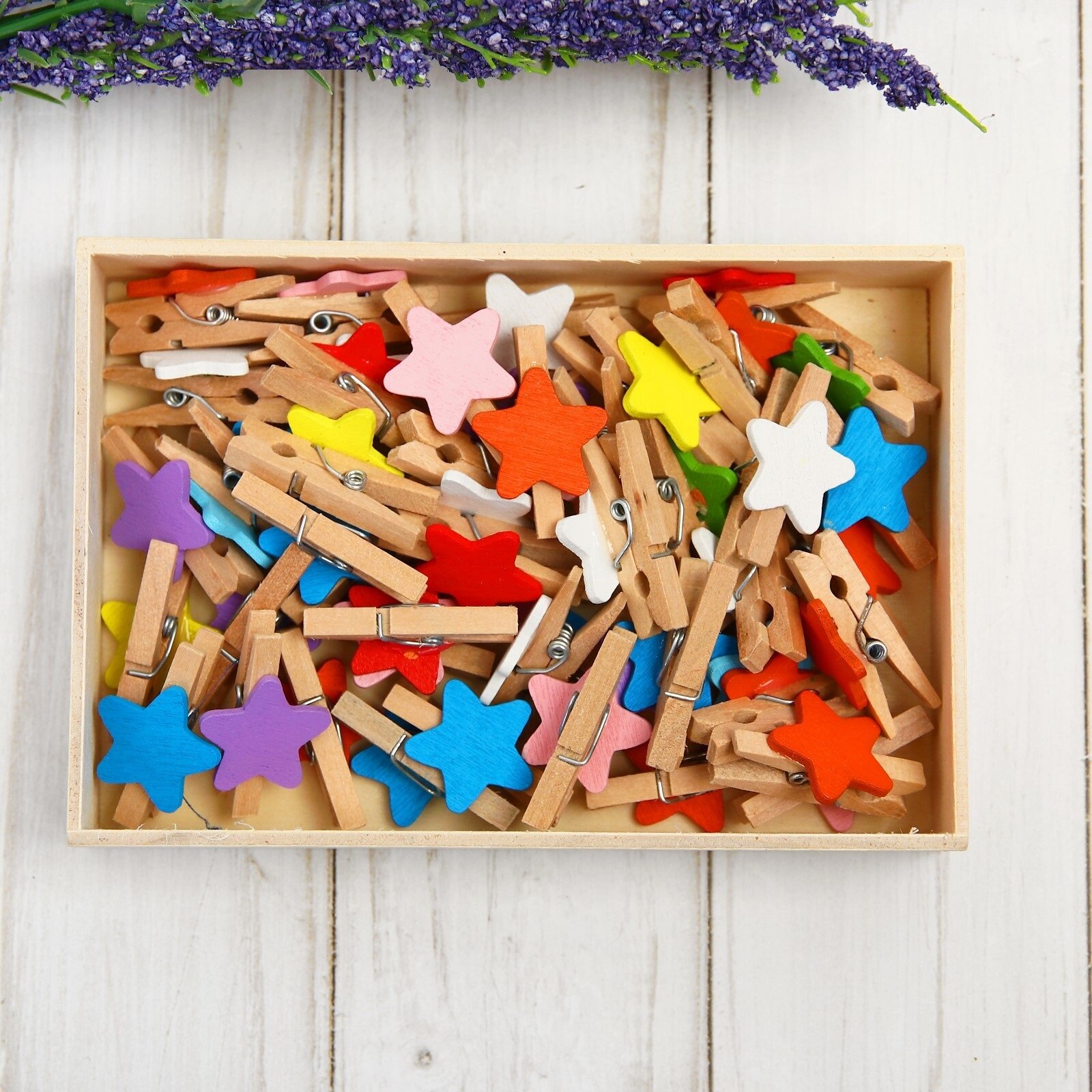 Набор прищепок в деревянной коробке "Звёздочки", набор 50 шт., цвет разноцветный, ЛАС играс