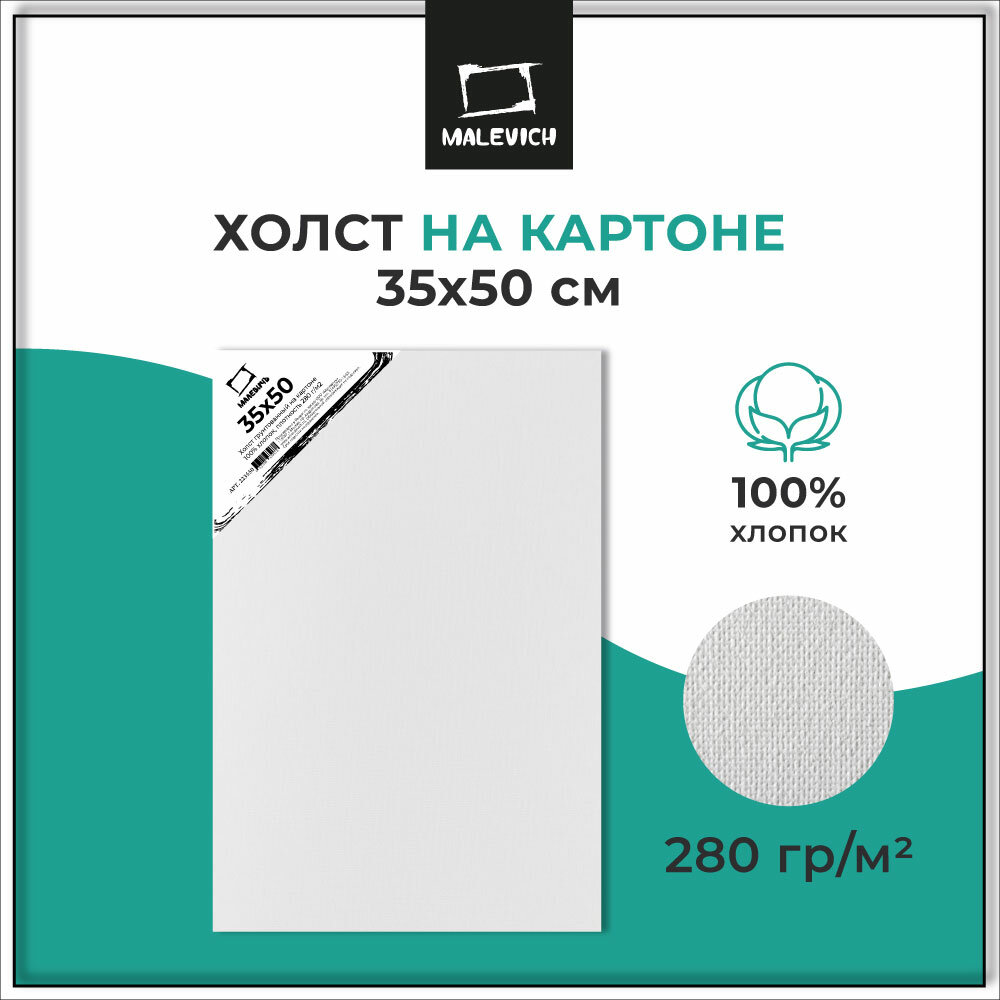 Купить Холст на картоне Малевичъ, белый, 35x50 см, хлопок 280 г\м2, грунтованный