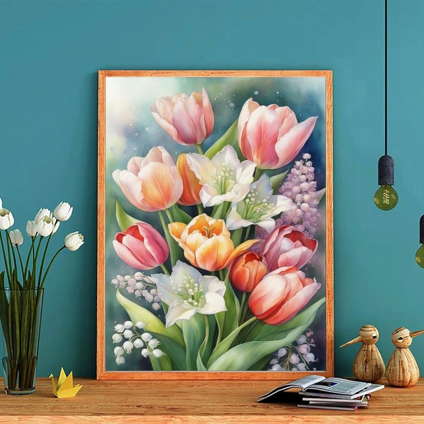Купить Картина алмазная мозаика на подрамнике 17*23 цветы лилии и тюльпаны