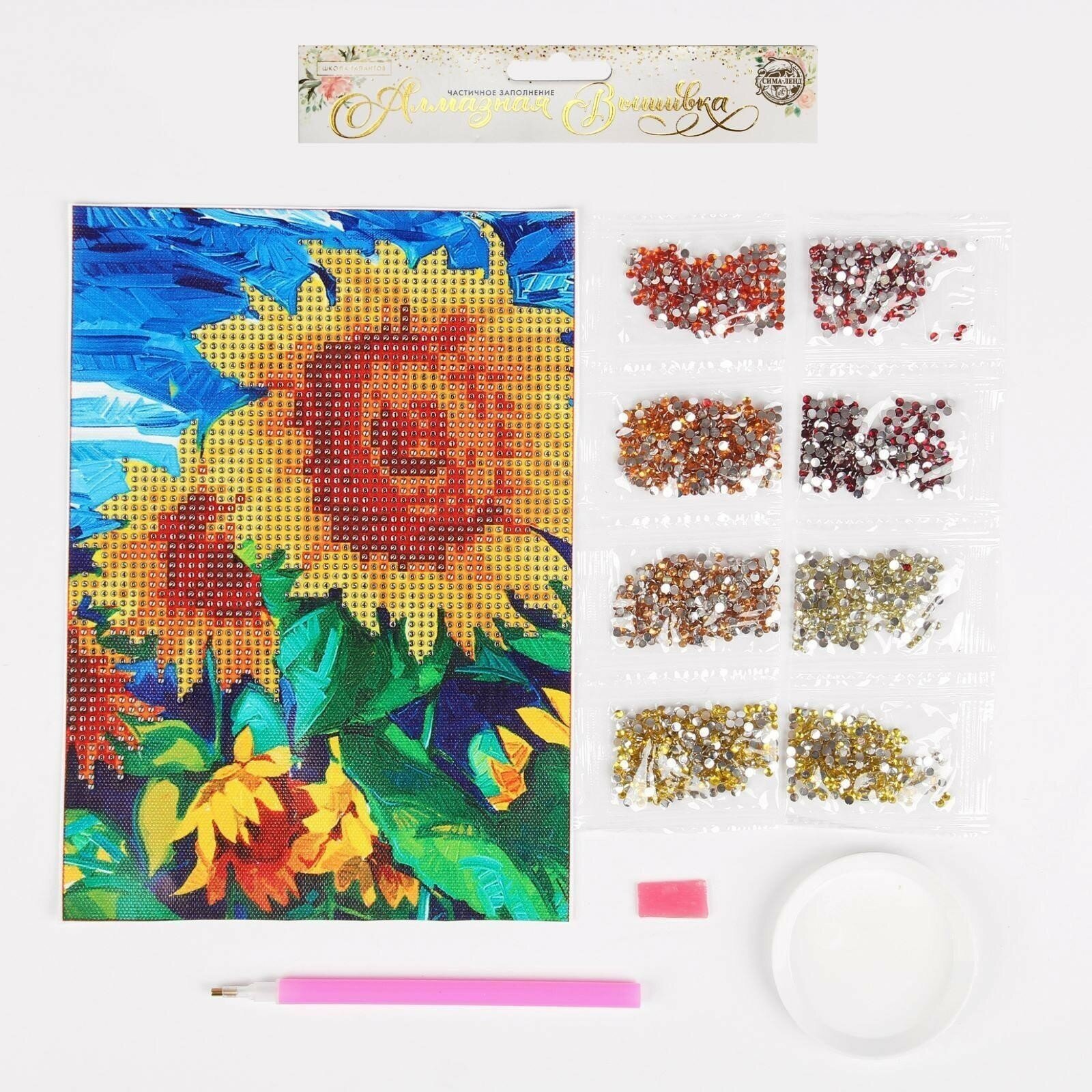 Алмазная мозаика с частичным заполнением на холсте «Подсолнухи», 15 х 21 см интересное: