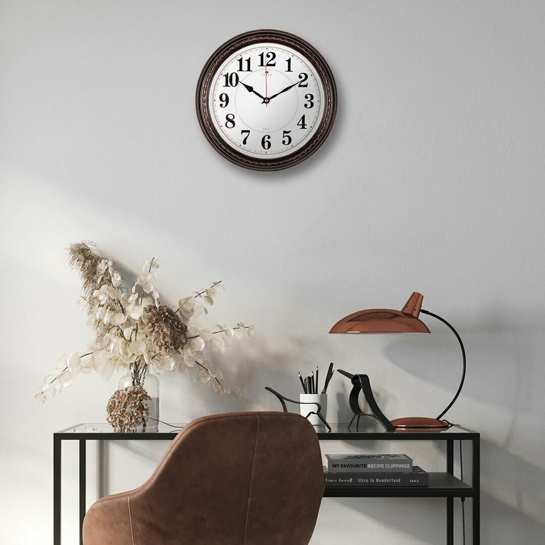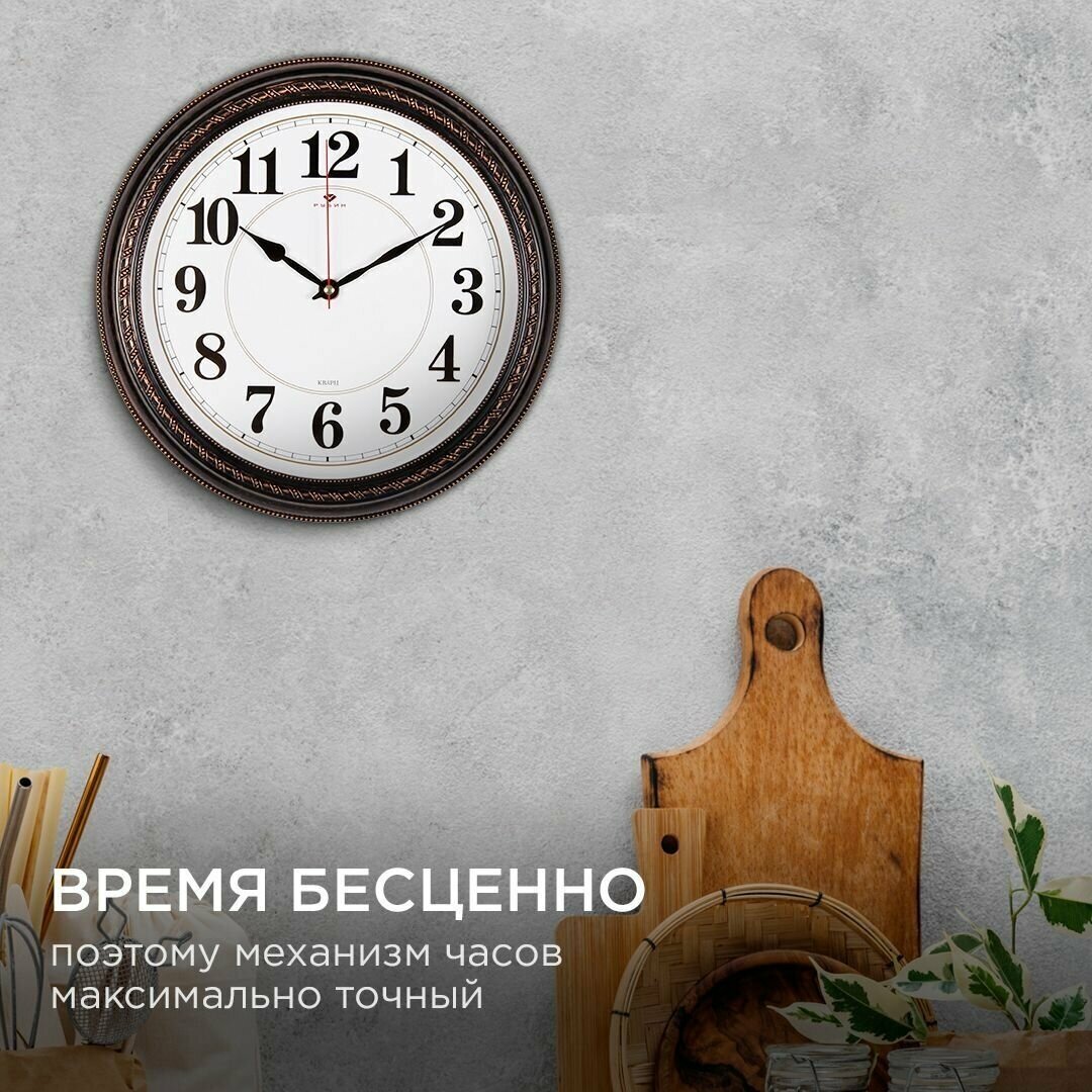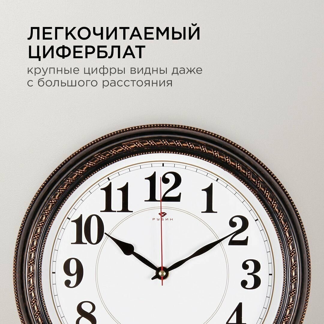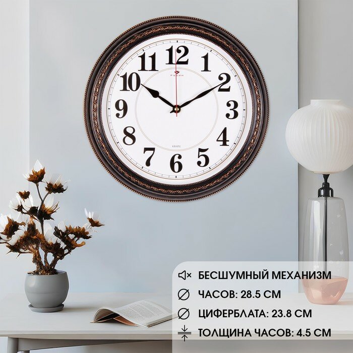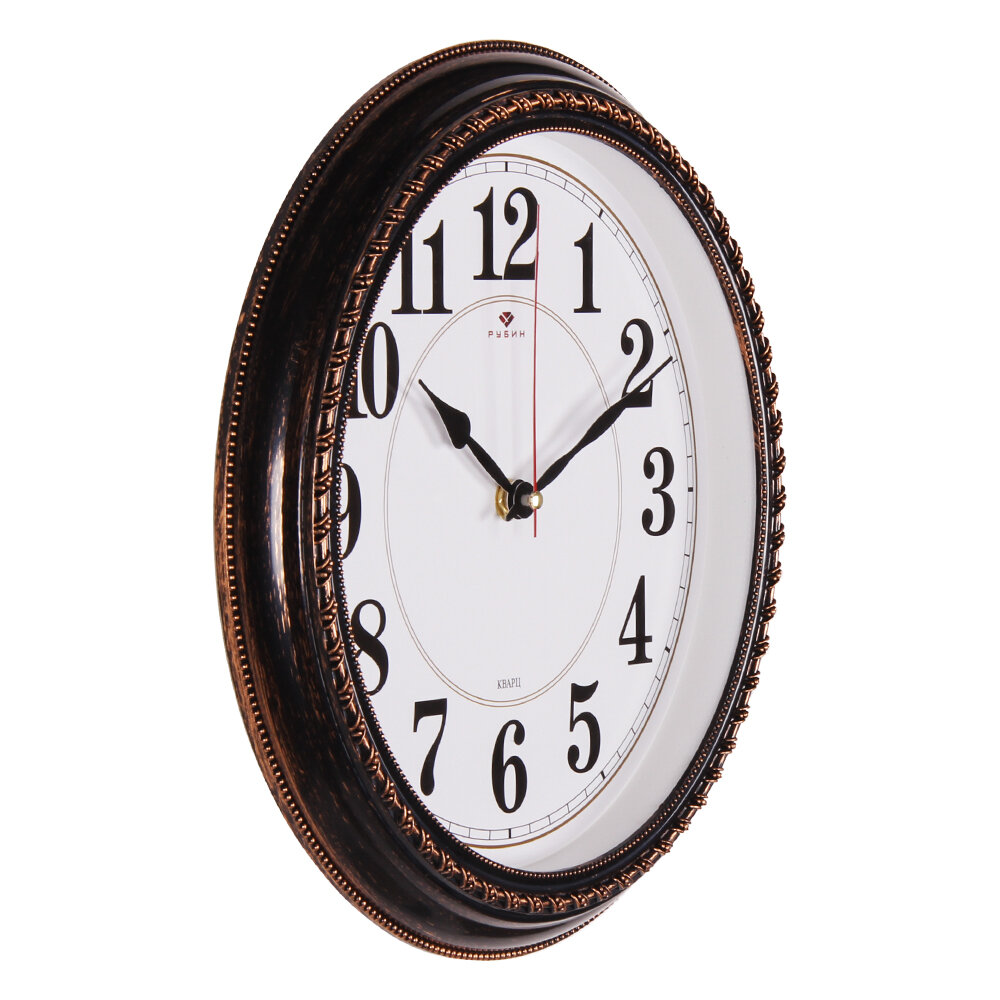 Купить Часы настенные Рубин 2950-002, кварцевые, круглые, пластик, коричневые