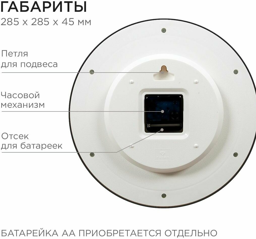 Часы на стену с кварцевым механизмом в форме круга с плавным ходом Рубин Классика d-28,5 см
