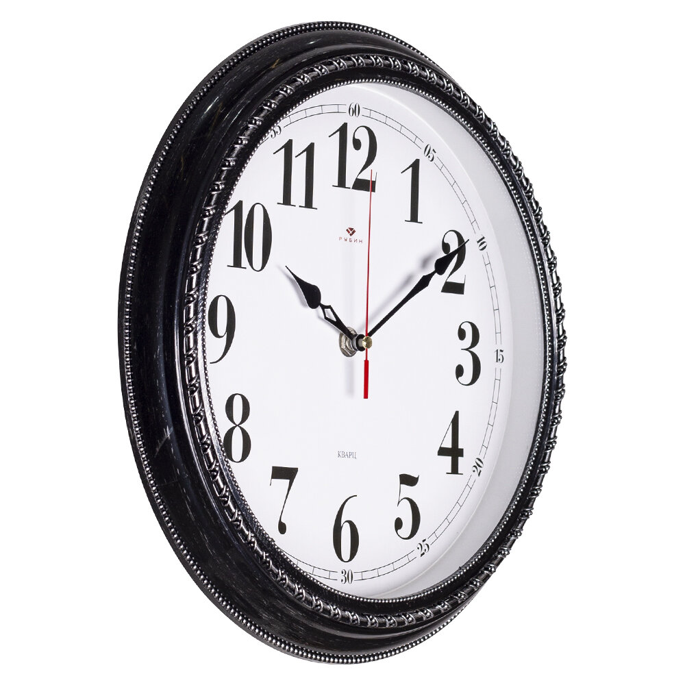 Часы настенные Рубин круглые 28,5 см, корпус черный с бронзой "Классика" (2950-002)