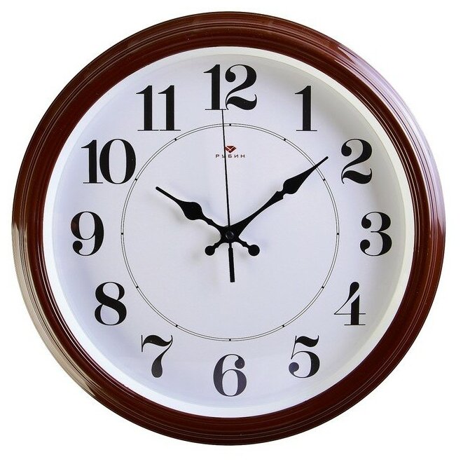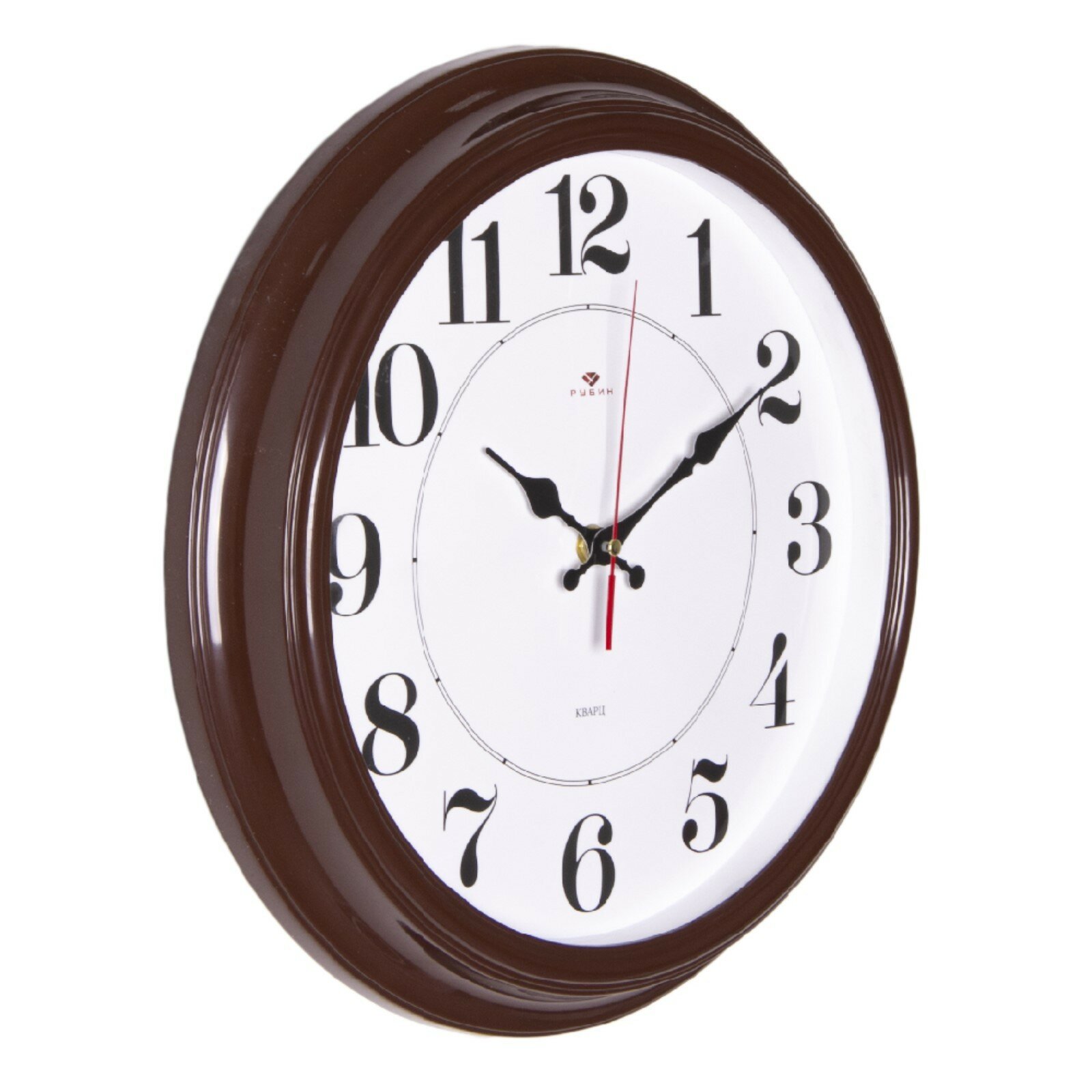 Часы настенные бесшумные Рубин круглые, "Классика", 35 см, коричневые