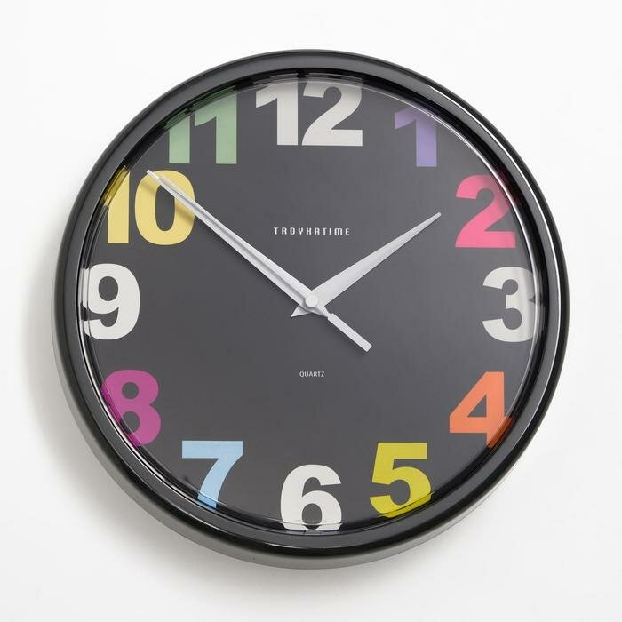 Часы настенные круглые "Радужные цифры", d=23 см, чёрные Тройка 1180176 .
