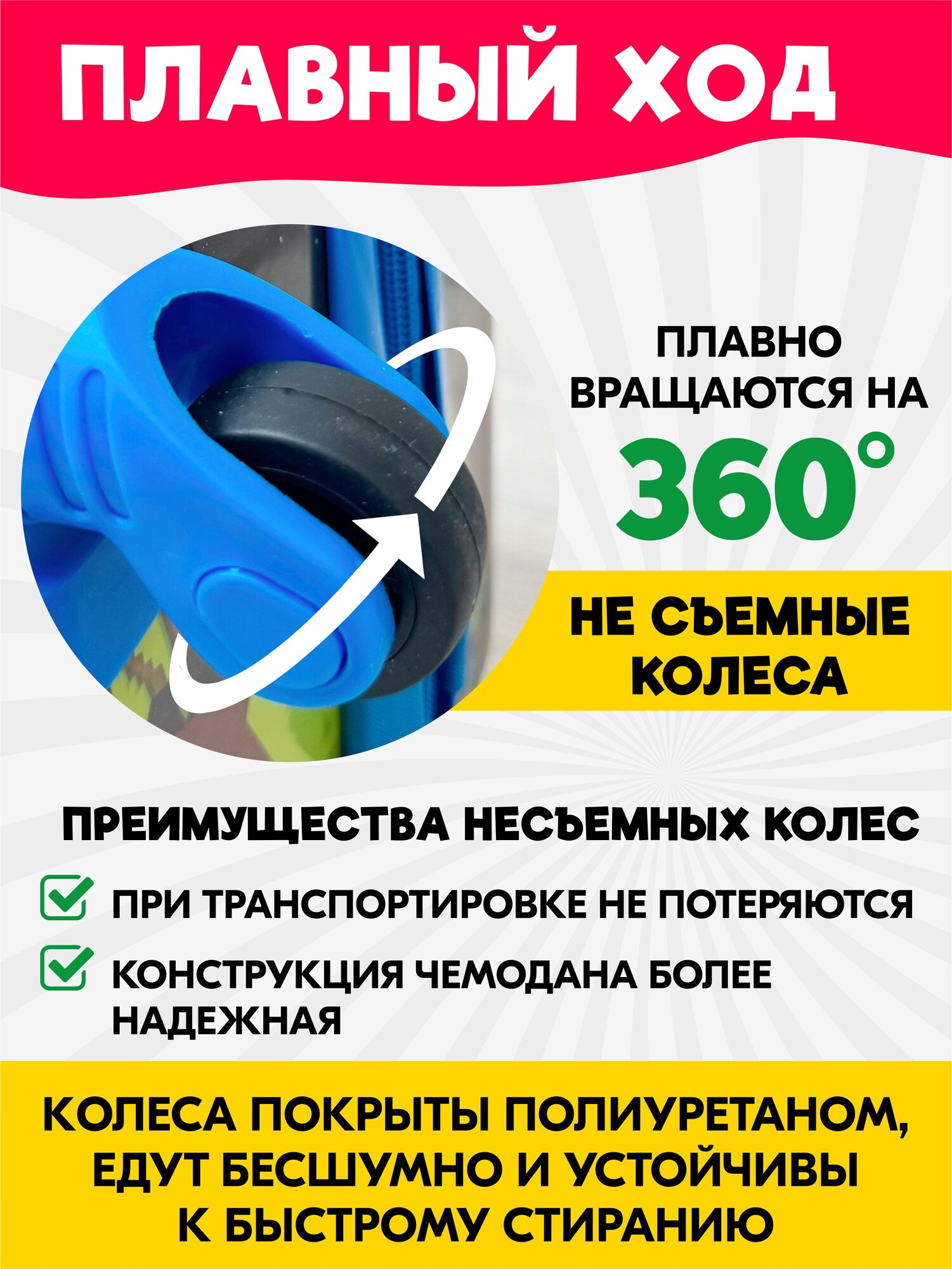 Чемодан на колесах детский Майнкрафт. Ручная кладь, 45 см, 28 л. Дорожный чемодан на колесиках для путешествий и поездок.