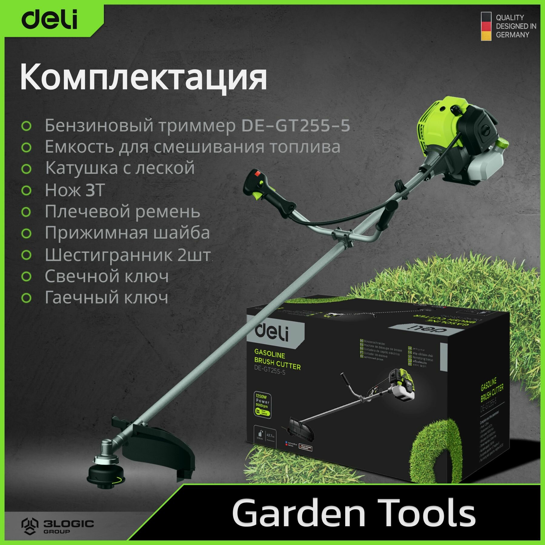 DELI Бензиновый триммер DE-GT255-5 (1250Вт/ 1,8л.с, 43 см3, бак 1,2л) 145418