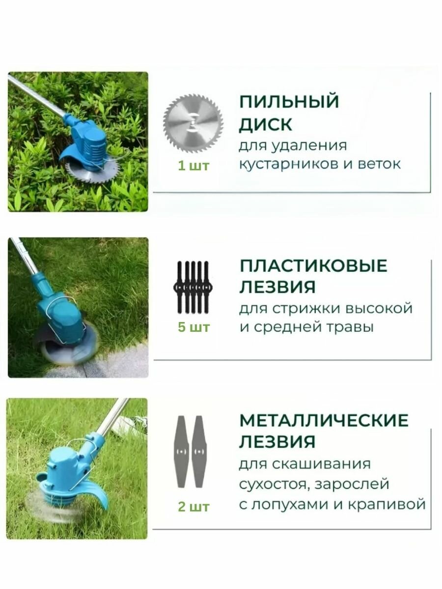 Триммер садовый, аккумуляторный, 980 Вт, переносной, ширина скашивания 15см интересное: