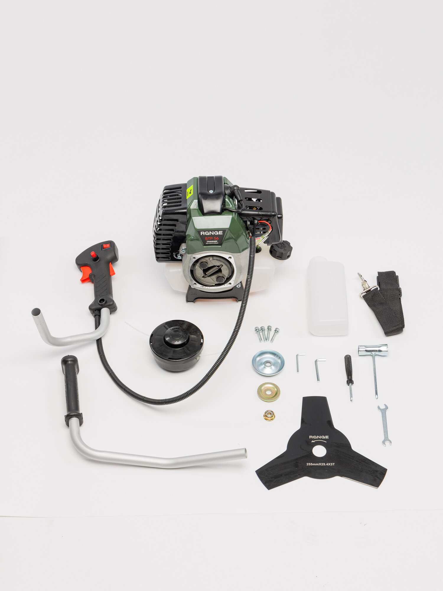 Триммер садовый Range БТР56, бензиновый, 3.3 л. с, леска/нож, с плечевым ремнём интересное: