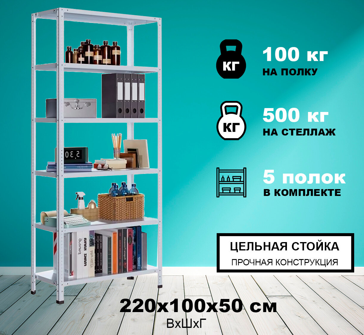 СохранитьСтеллаж металлический Метреал СтМ-500 220x100x50 см, 5 полки, серый, (В*Г-220x102x52) интересное: