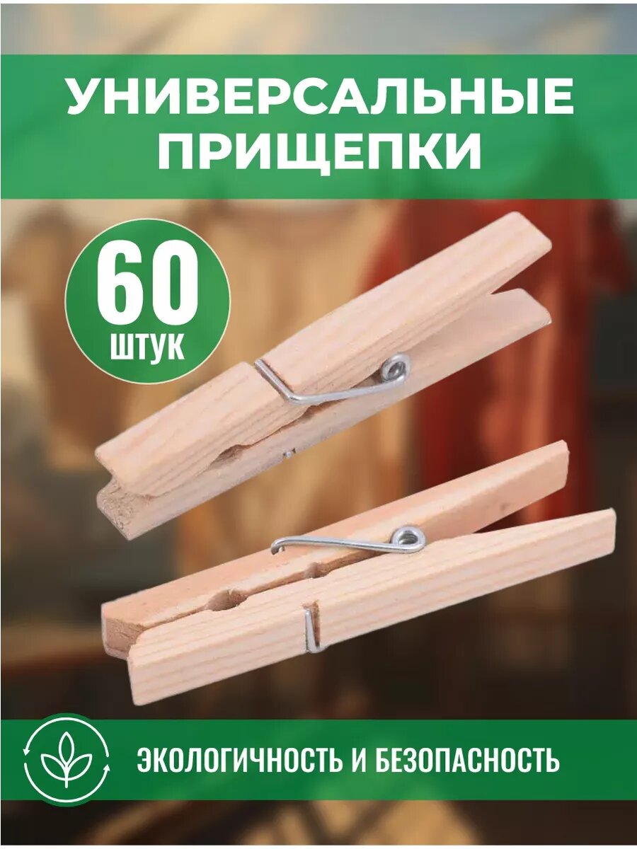 Набор прищепок бельевых деревянных 60 шт, экологичные, безопасные интересное: