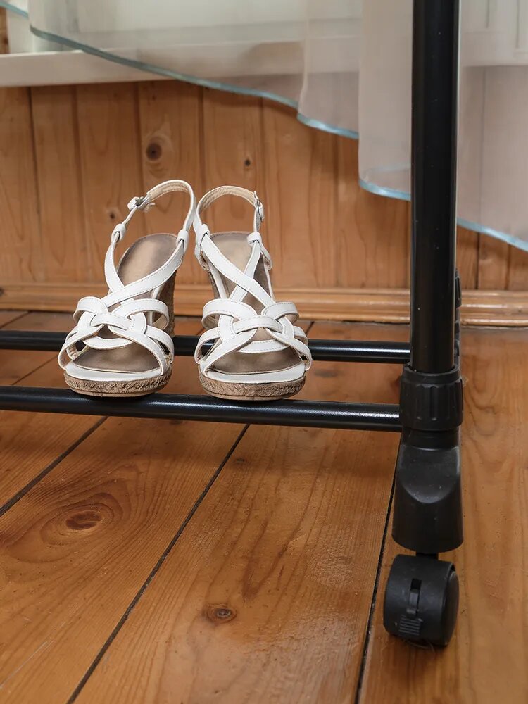 | Подобная комплектация | Вешалка напольная для хранения вещей и одежды, металлическая на колесиках с полкой для обуви - 1 шт |