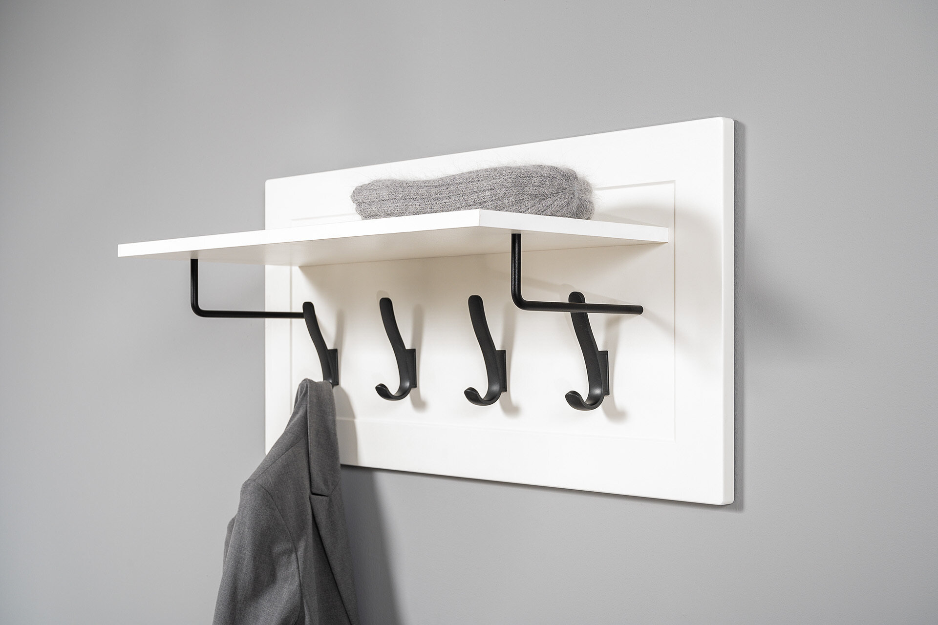 Первый Мебельный Настенная вешалка с полкой Остин для прихожей, 4 крючка, 79.7х29.6х39.7 см, Белый шагрень