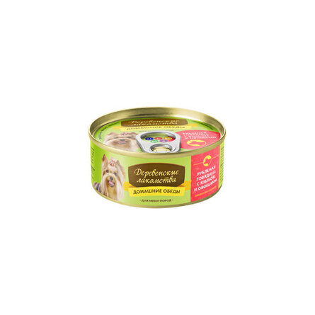 Купить Деревенские лакомства Корм влаж. рубленая говядина с языком и овощами д/собак мини пород конс.100г