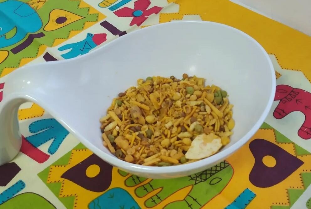 | Состав | рафинированное пальмолеиновое масло, нутовая мука (9,6%), колотый бенгальский нут (8%), чечевица (7%), картофель, сахар, зеленый горох (5%), рисовые хлопья (5%), мука из очищенных бобов вигны борцелистной, очищенный маш (4,7%), арахис (4,5%), кукурузные хлопья (2,4%), смесь пряностей, рисовая мука, изюм (1,5%), кешью (5%), йодированная соль, черная соль, шпинатный порошок, куркума, кукурузный крахмал, гидрокарбонат натрия [E500(ii)] в качестве разрыхлителя, лимонная кислота (E330) и яблочная кислота (E296) в качестве регуляторов кислотности. Содержит натуральные [E100 и E141(ii)] и искусственные (E133) красители, а также ароматизаторы, идентичные натуральным). Содержит аллергены: арахис и орехи (кешью), краситель E133. Продукт может содержать следы пшеницы, молока, орехов, кунжута, сои и овса |