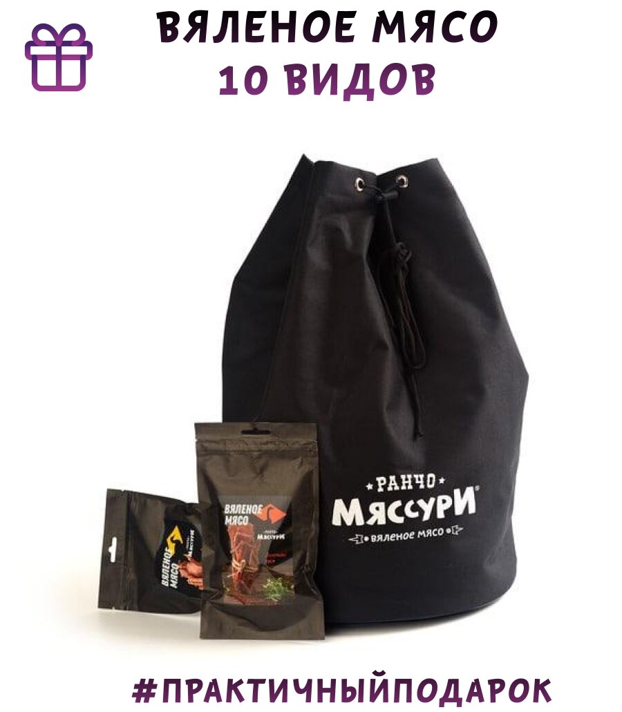 Вяленое мясо Ранчо Мяссури Подарочный набор сушеное мясо в черной сумке, 10 видов, 500г интересное: