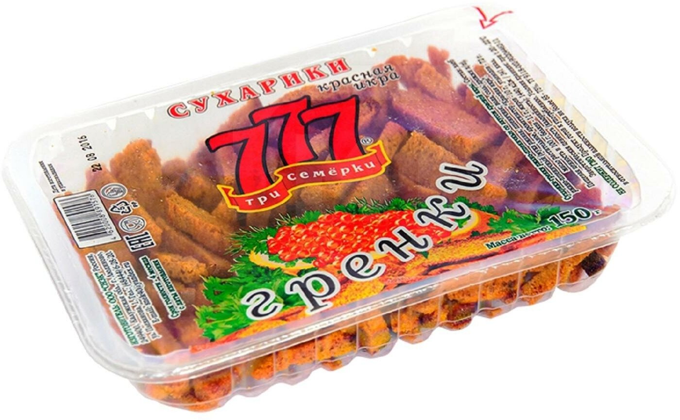 Гренки 777 ржано-пшеничные с красной икрой контейнер 150гр (12шт) интересное: