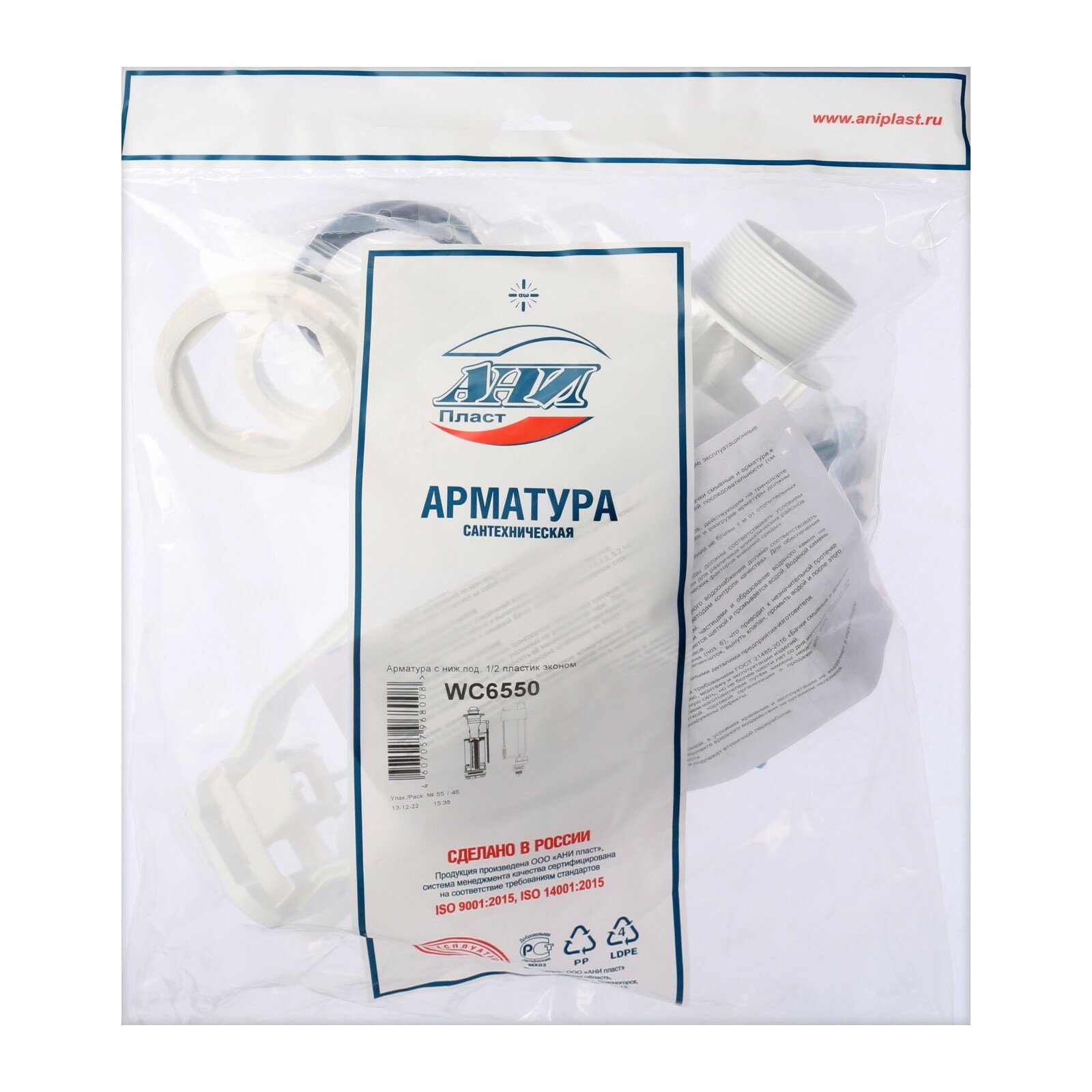 Набор АНИ Пласт WC6550 для бачка унитаза с нижней подводкой 1/2", с пласт. штуцером кнопка Белая эконом