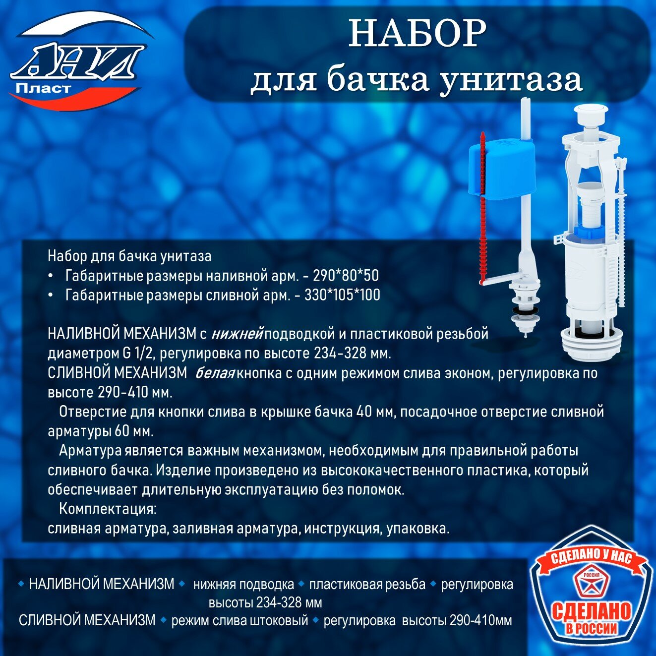 Арматура для бачка сливная/наливная Эконом 1/2" нижнее подключение кнопка белый 1/реж АНИ Пласт WC6550 интересное: