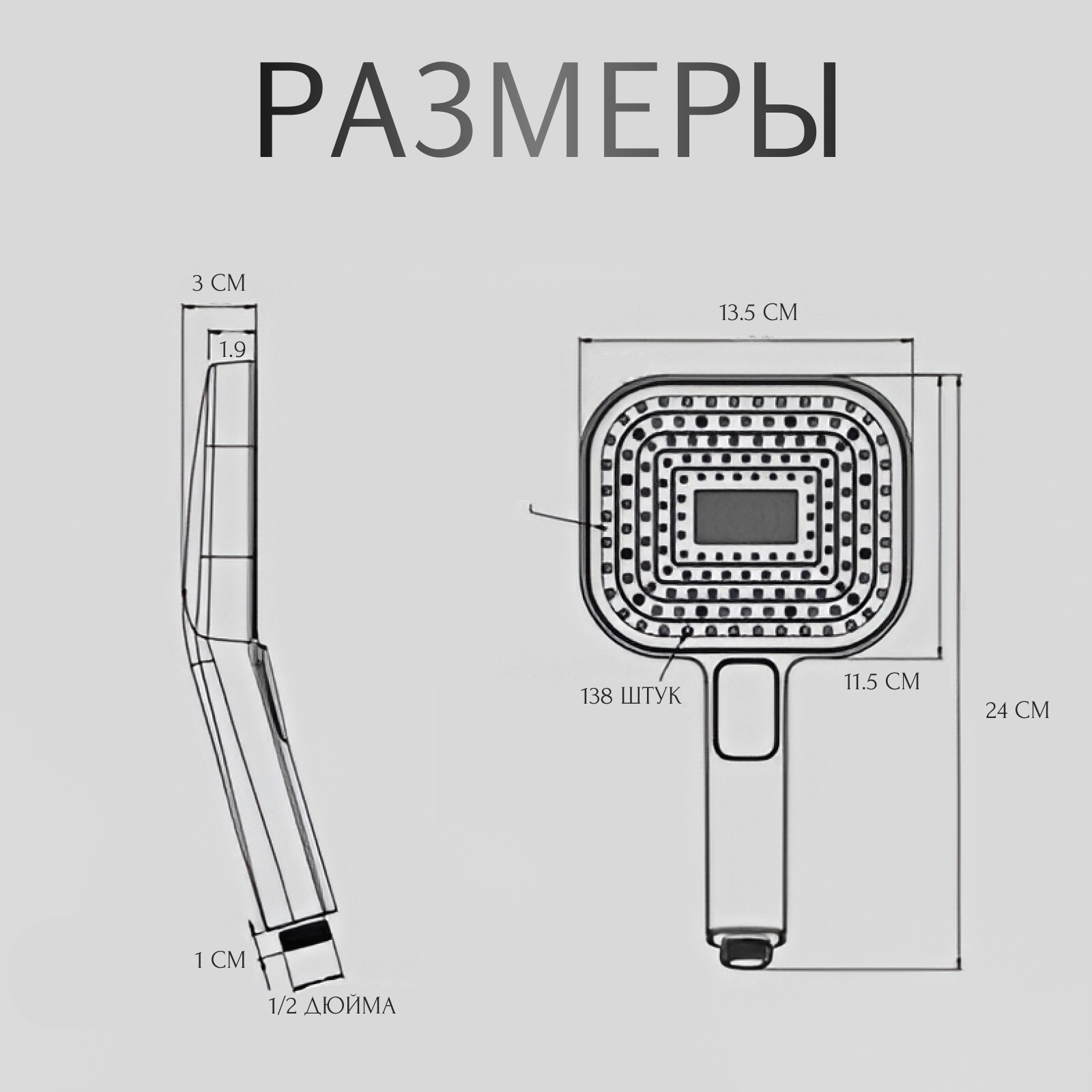 Лейка для душа / насадка для душа / водосберегающая / массажная / душ / зеркальная / экономия воды, 3 режима / квадратная форма
