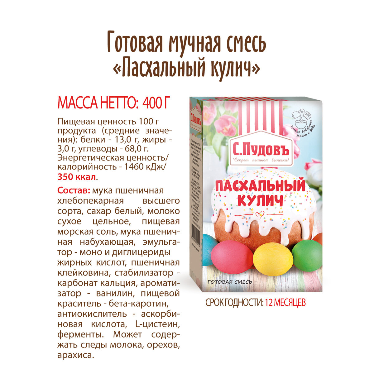 Смесь для выпечки "Пасхальный кулич" С. Пудовъ, 500 г. (смесь , дрожжи) интересное: